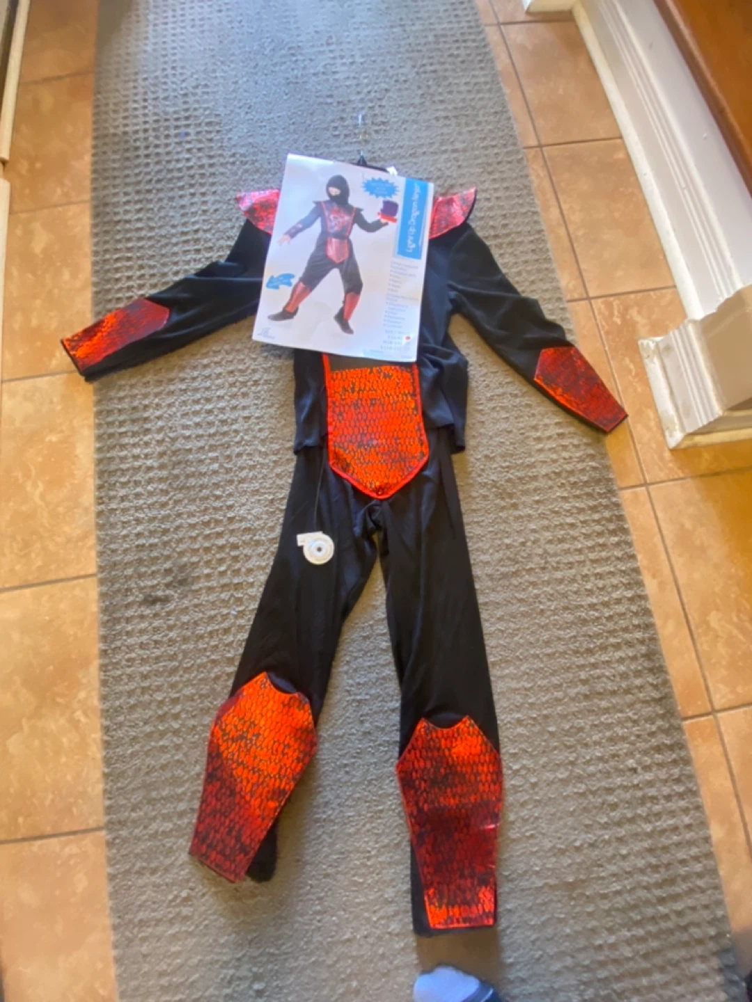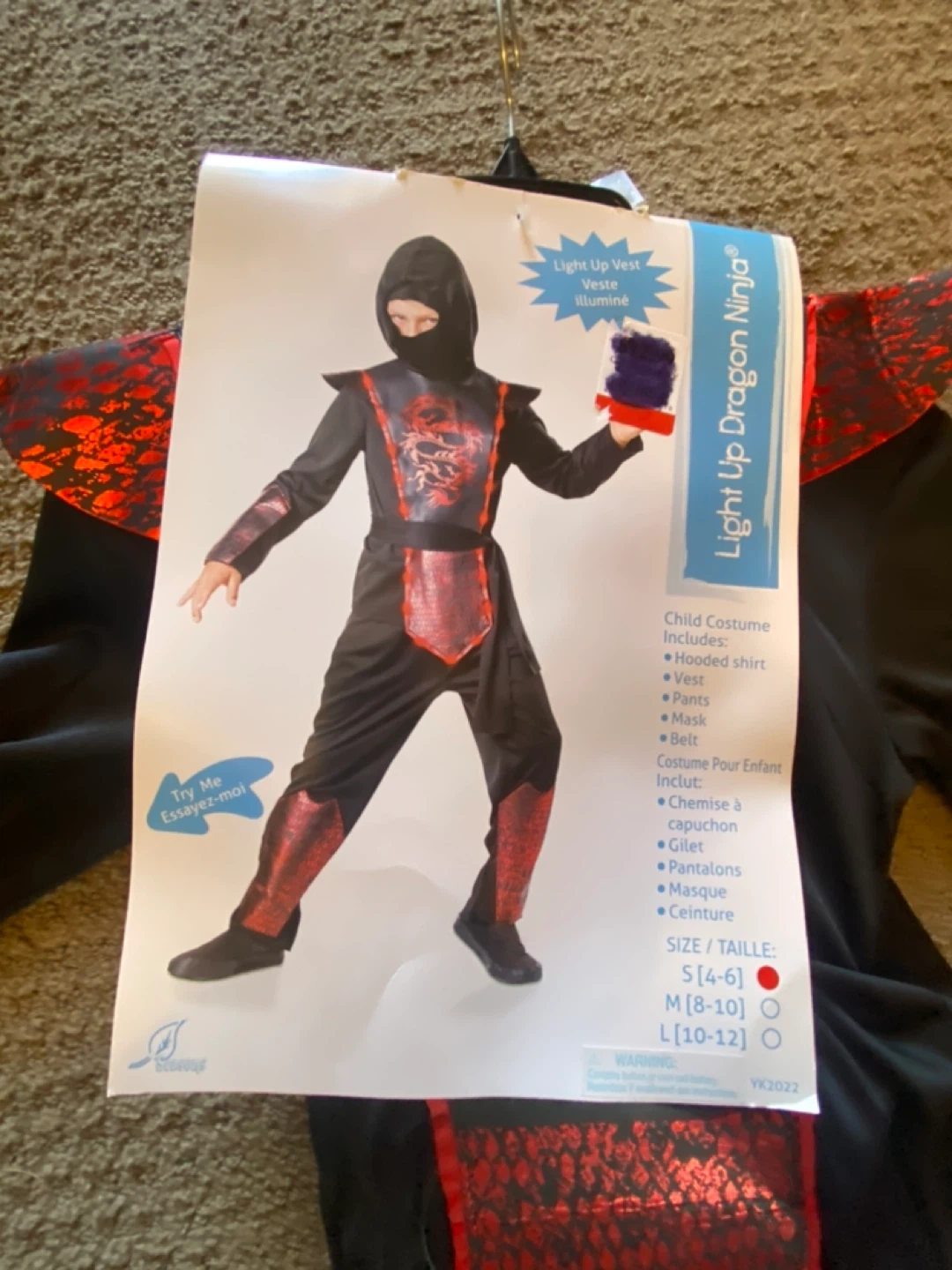 32Get ready for some ninja action with this Light Up Dragon Ninja costume! It's a size medium (8-10). The costume includes a hooded shirt, vest, pants, mask, and belt. Perfect for Halloween or dress-up fun!