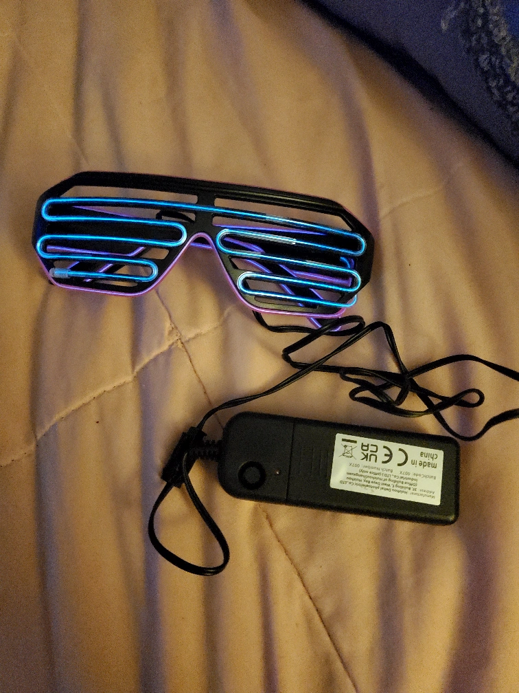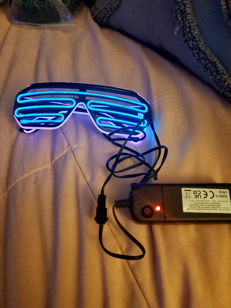 10Cool light up rave glasses! Perfect for parties or just adding some fun to your look. They come with a battery pack and are ready to go