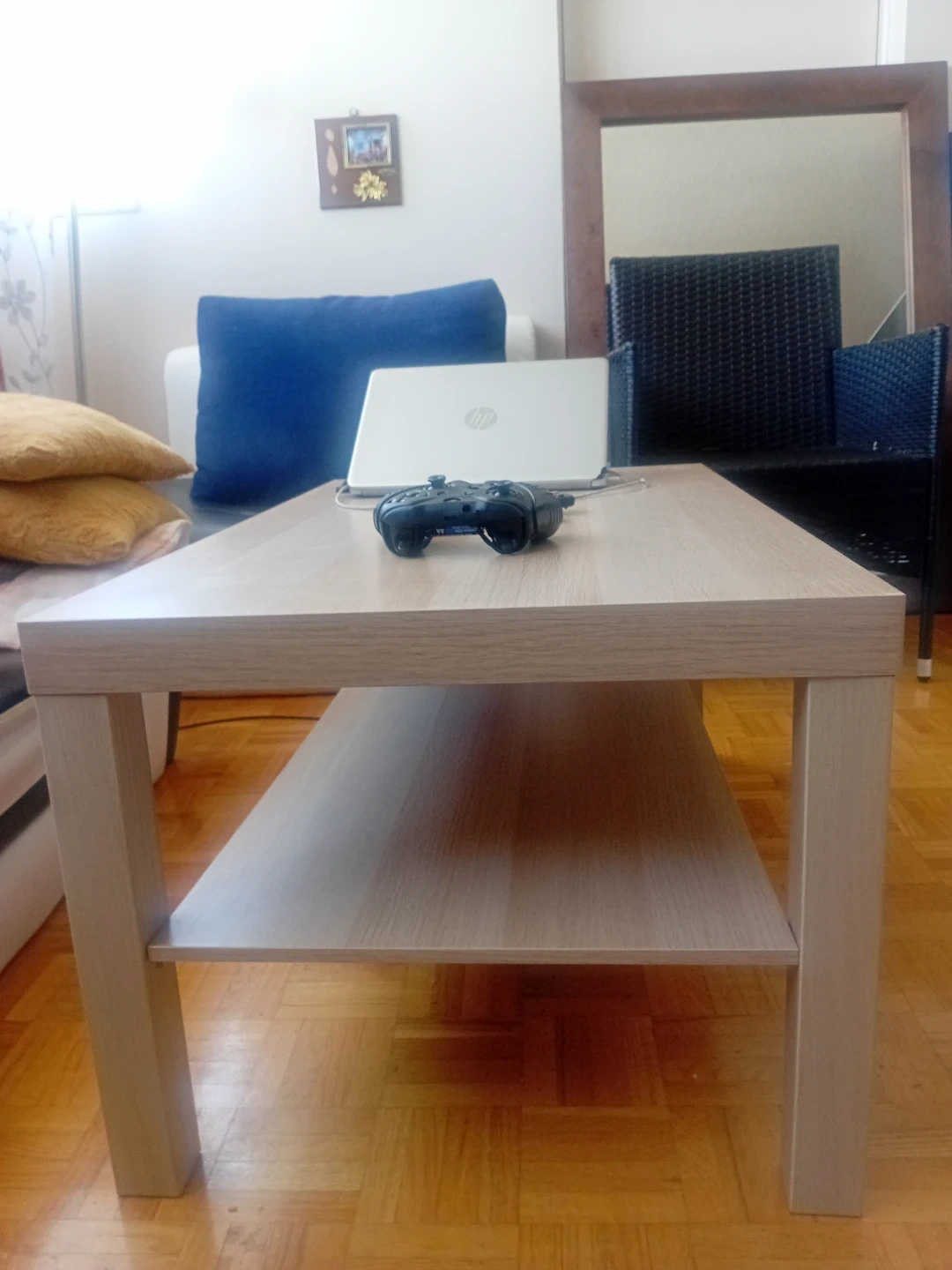 36Selling a light wood coffee table that's in great shape! It has a handy shelf underneath for extra storage or decor. Perfect for any living room! Items for size comparison. They don't come with the table. I'm open to negotiating!