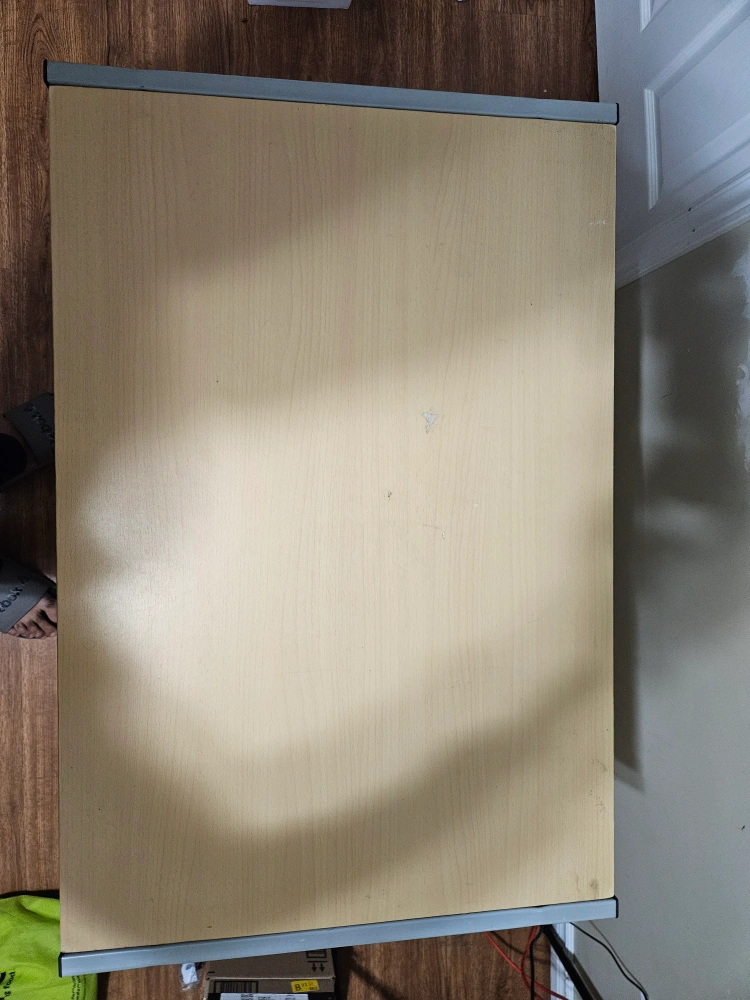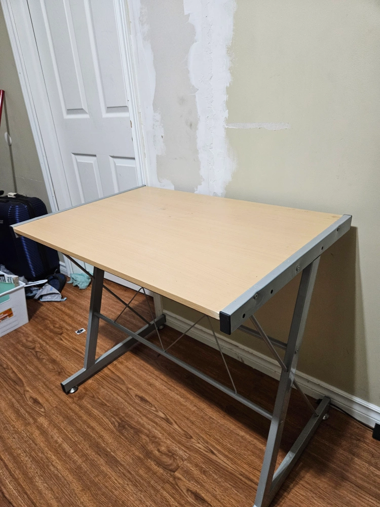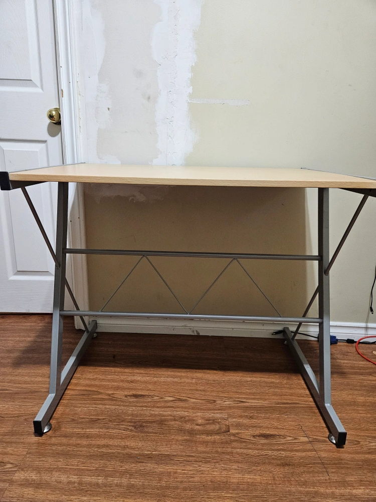 Selling a simple desk with a light wood top and metal frame. It's sturdy and has a clean look, perfect for a home office or study space. It's in good condition and ready for a new home! 33 x 22 x 27 L x B x H