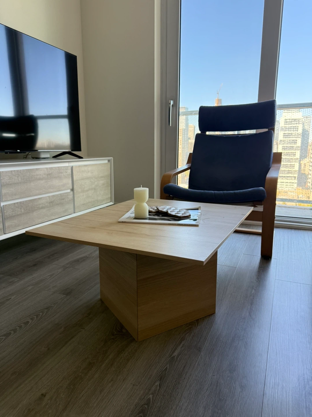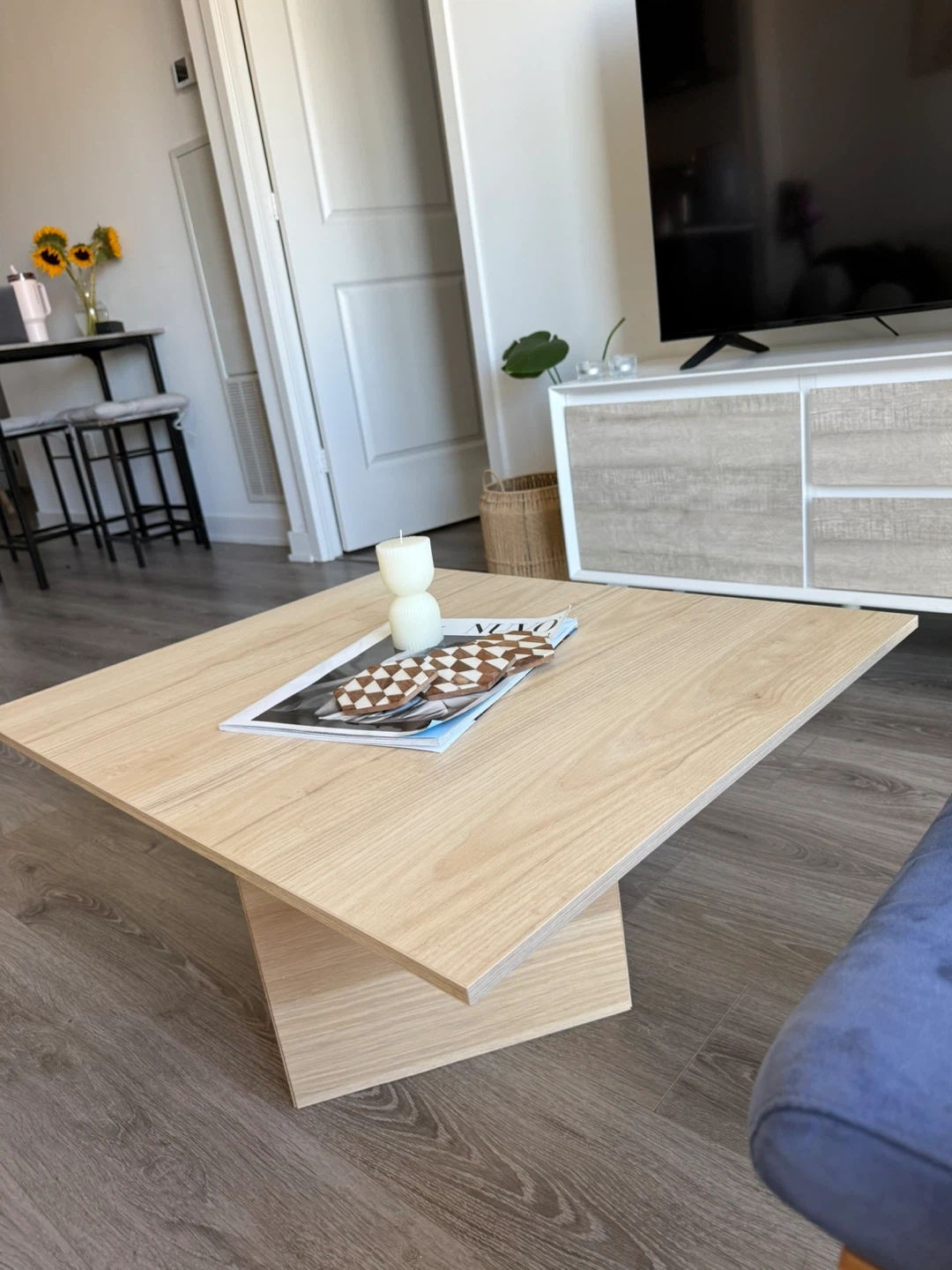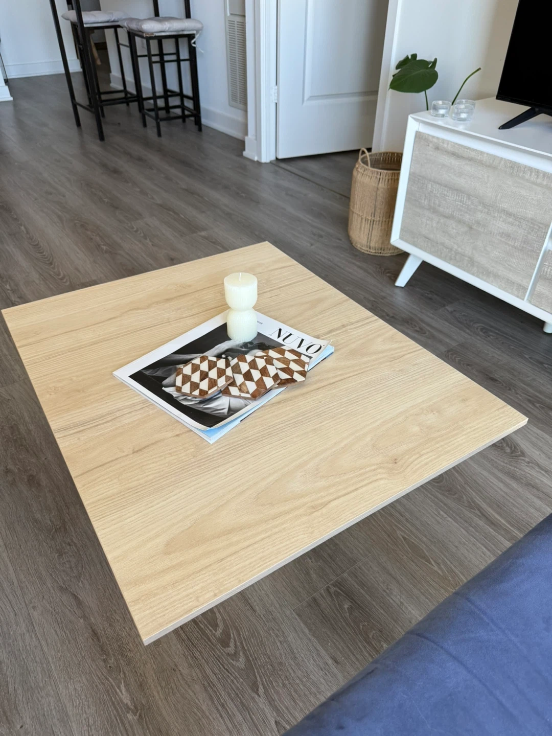 96Selling a gently used light wood square coffee table. It's a great size for a living room and has a modern, minimalist look. Perfect for your morning coffee or to put your feet up!