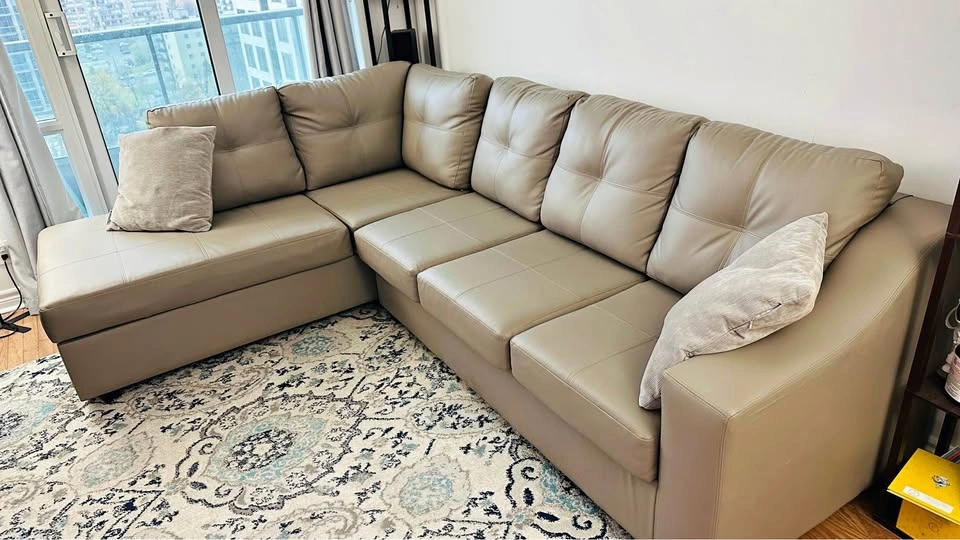 Lightly used Ashley's L shaped sofa for sale. Looks new, no material damage, cushion feels new and sturdy. Grey color,enhances your home's aesthetic looks and feel. Easy to clean and maintain. Sofa comes out in 2 parts. Seating cushions can be removed for easy transport. Paid 1600 for this, asking 500. Will give the sofa cover and 2 pillows for free!