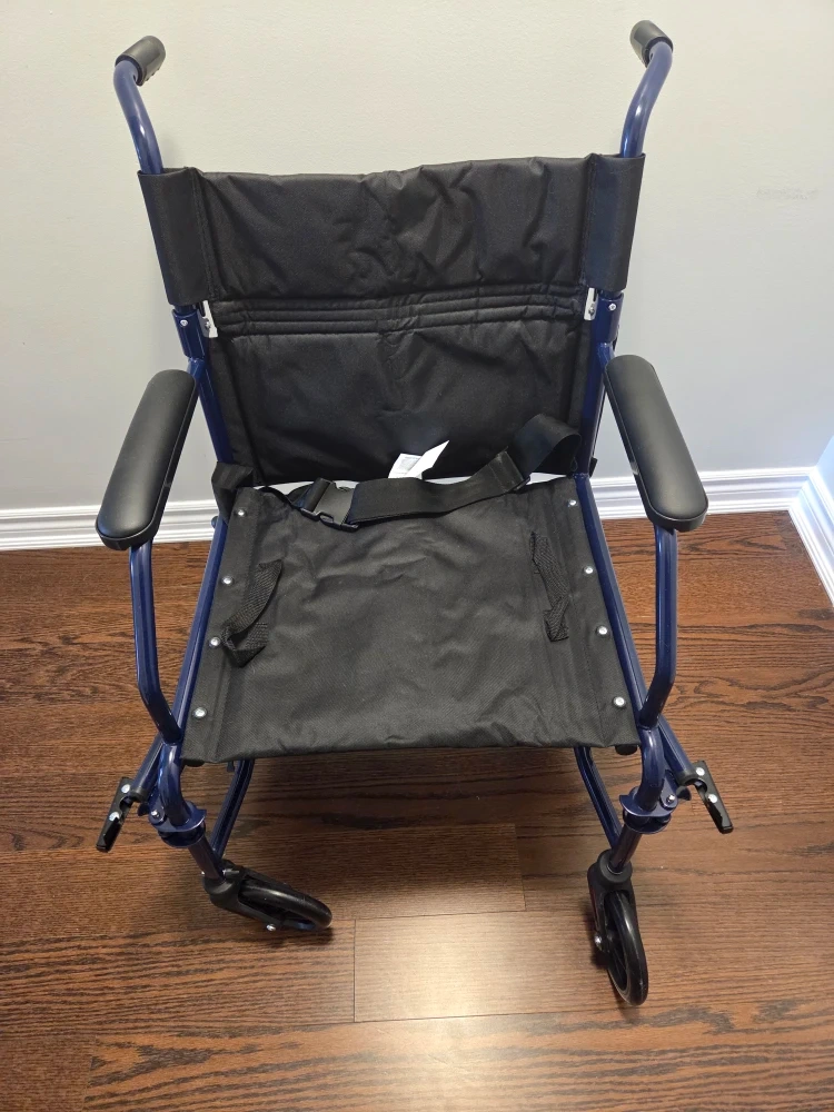 10Selling a lightweight transport wheelchair in red! It's in great condition and ready to use. Perfect for anyone needing assistance with mobility. It features a comfortable seat and backrest, armrests for added convenience. Great for travel and easy to store. Includes bag and cupholder.