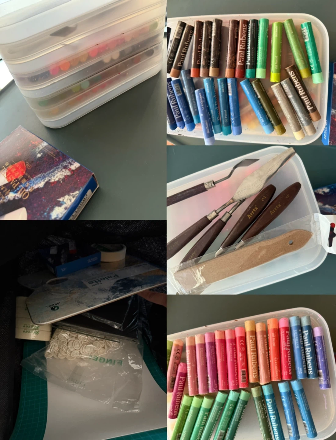 Like New 72-color oil pastel set + an extra brand-new box of white, comes with various accessories. 60 cad for all