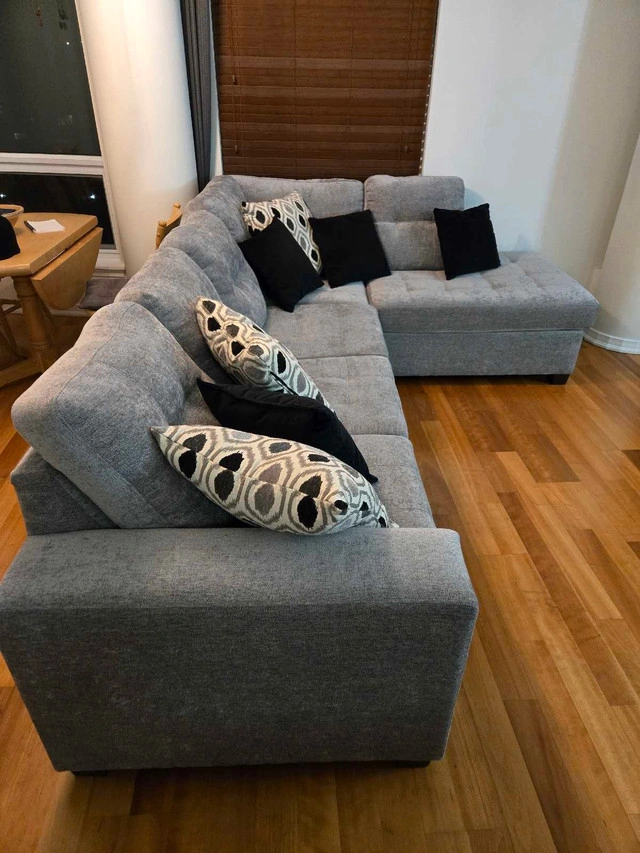 28L-Shaped Couch for Sale. Bought NEW 5 months ago for $1,700, selling now for $850 — only selling because of a move. Excellent quality and extremely comfortable, in like-new condition. Lenght: 116" (295cm) Width: 82" (210cm) Depth: 36" (92cm) Perfect for any living room setup. Pickup only. Feel free to message if you have any questions!