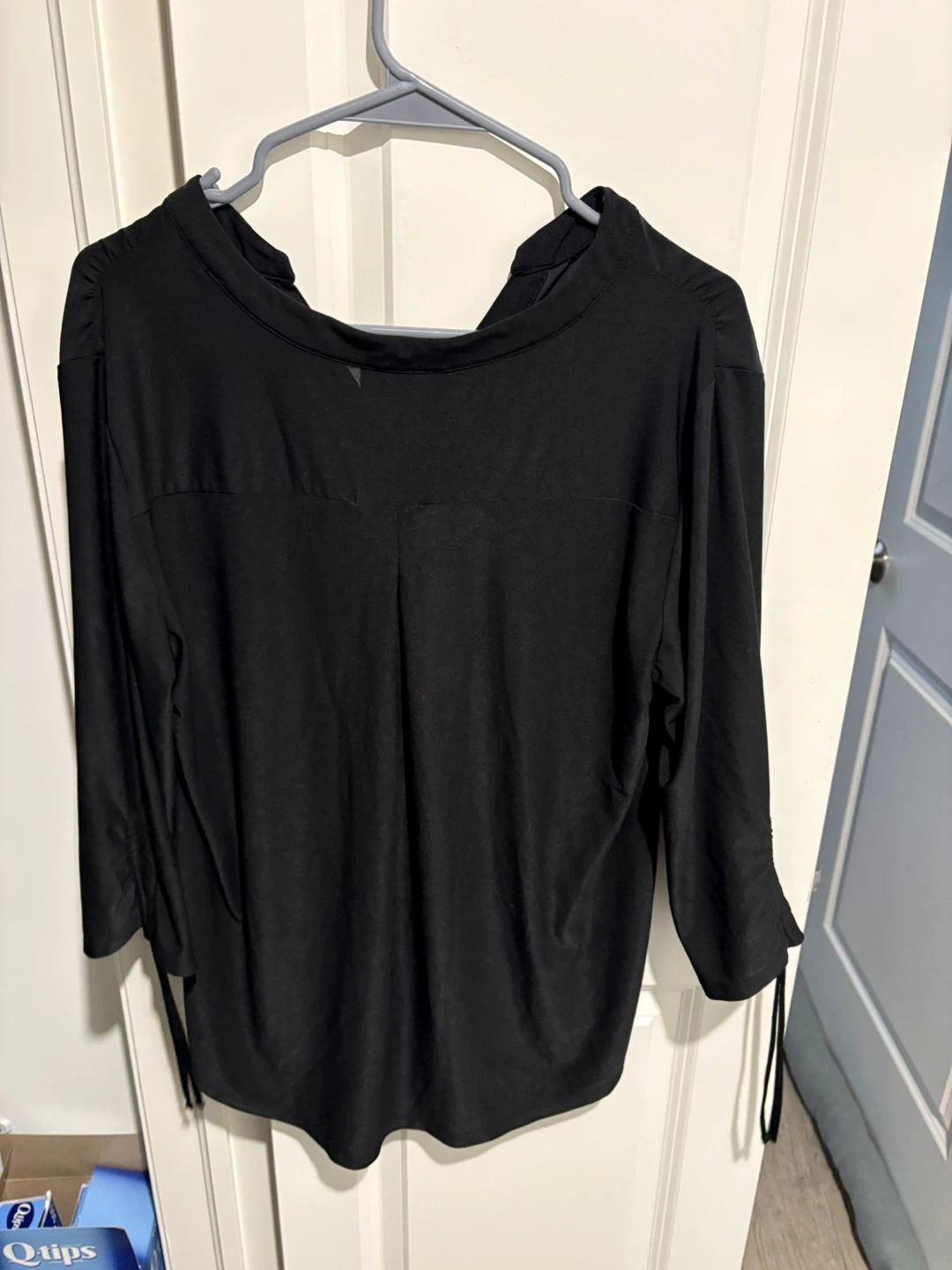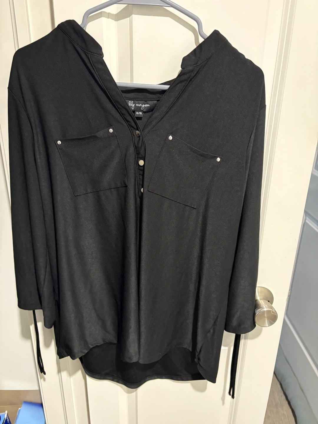 Selling a gently used Lily Morgan black blouse. It's a size XL and in great condition. Perfect for a casual or dressed-up look!