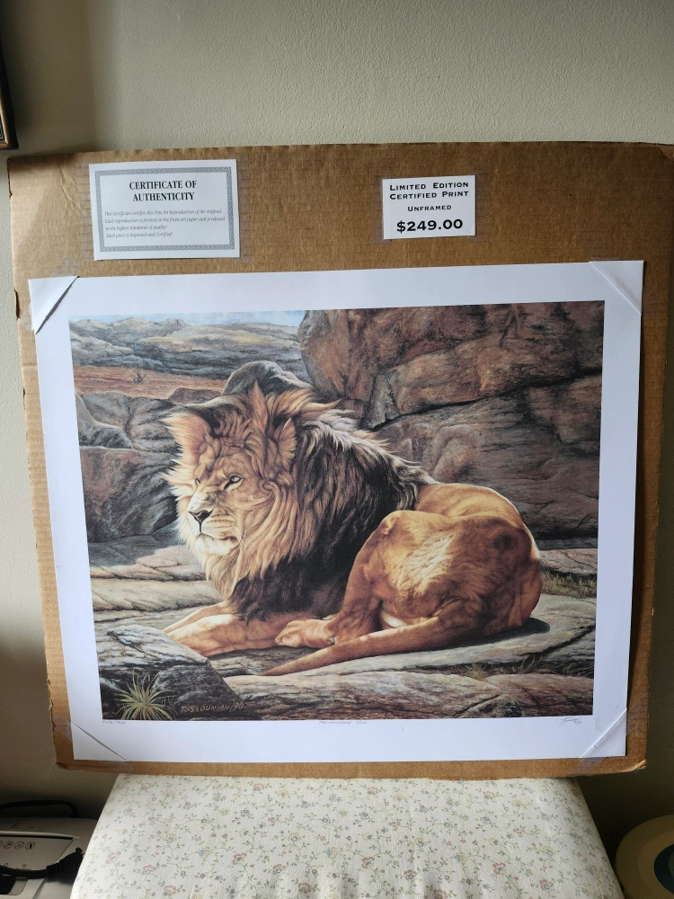Selling a limited edition certified print of a lion. It's an unframed piece that originally retailed for $249.00. Comes with a certificate of authenticity