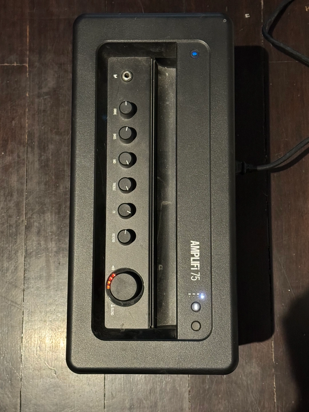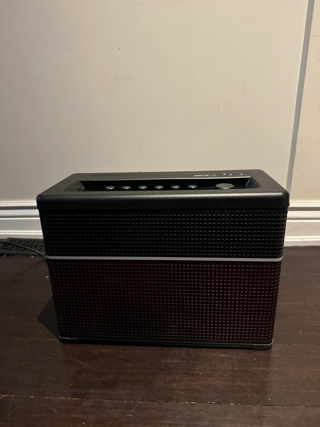 31Line 6 AMPLIFi 75 guitar amplifier in excellent condition. This amp combines traditional guitar tones with Bluetooth functionality, allowing you to stream music and play along. Great for practice or jam sessions at home. Comes with control options for adjusting drive, bass, mid, and treble. Specs: - 75 watts - Bluetooth and app compatibility - High-quality sound and tone control