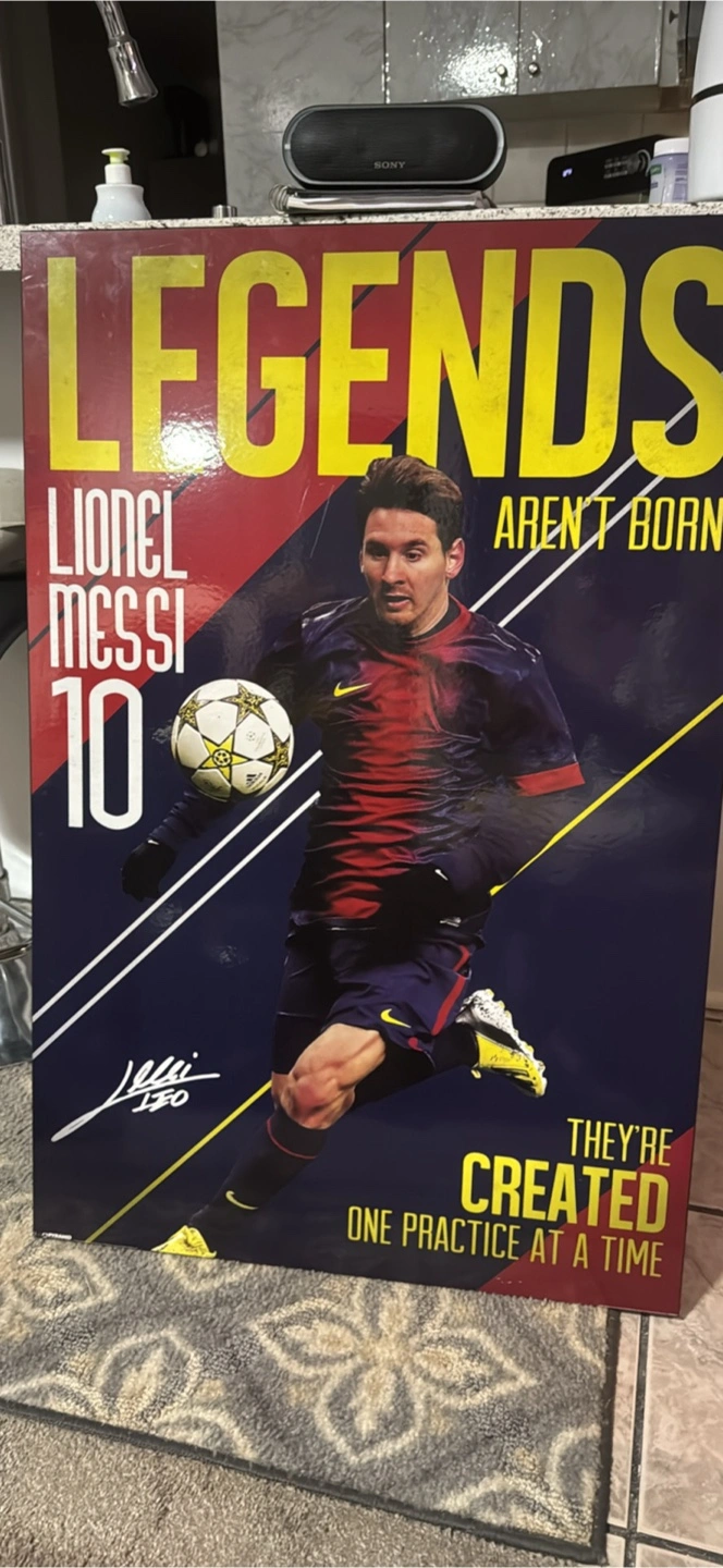 Selling a Lionel Messi 'Legends' hard poster. It features a vibrant design with Messi in action! Perfect for any soccer fan's room or collection