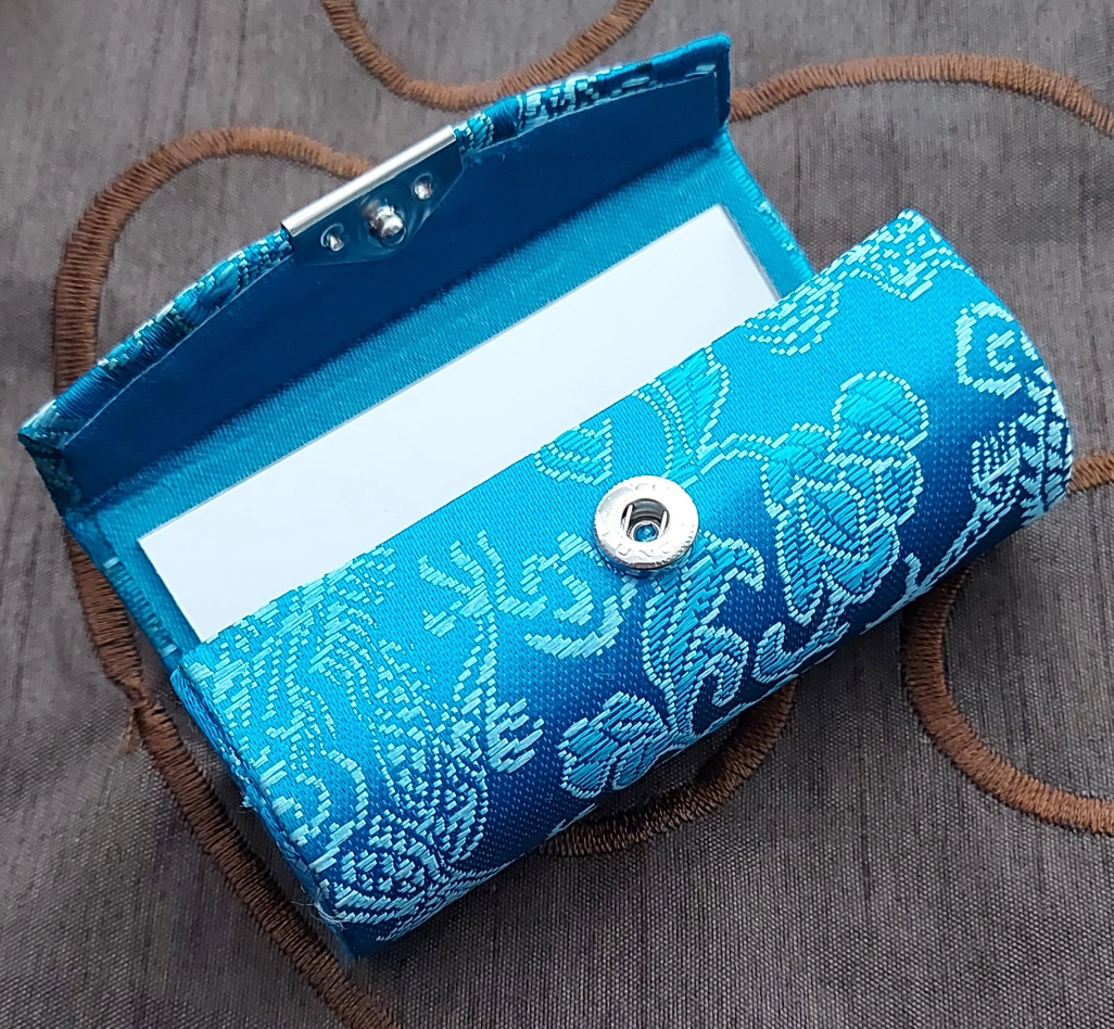 A small, blue, floral lipstick case with a mirror inside. It has a silver clasp. Never used. Pick up only Pet free and smoke free household Yonge and Eglinton area Only cash payment