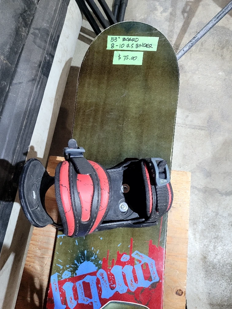 60Selling a Liquid Hybrid snowboard, 53 inches in length! It comes with 8-10 U.S. size bindings