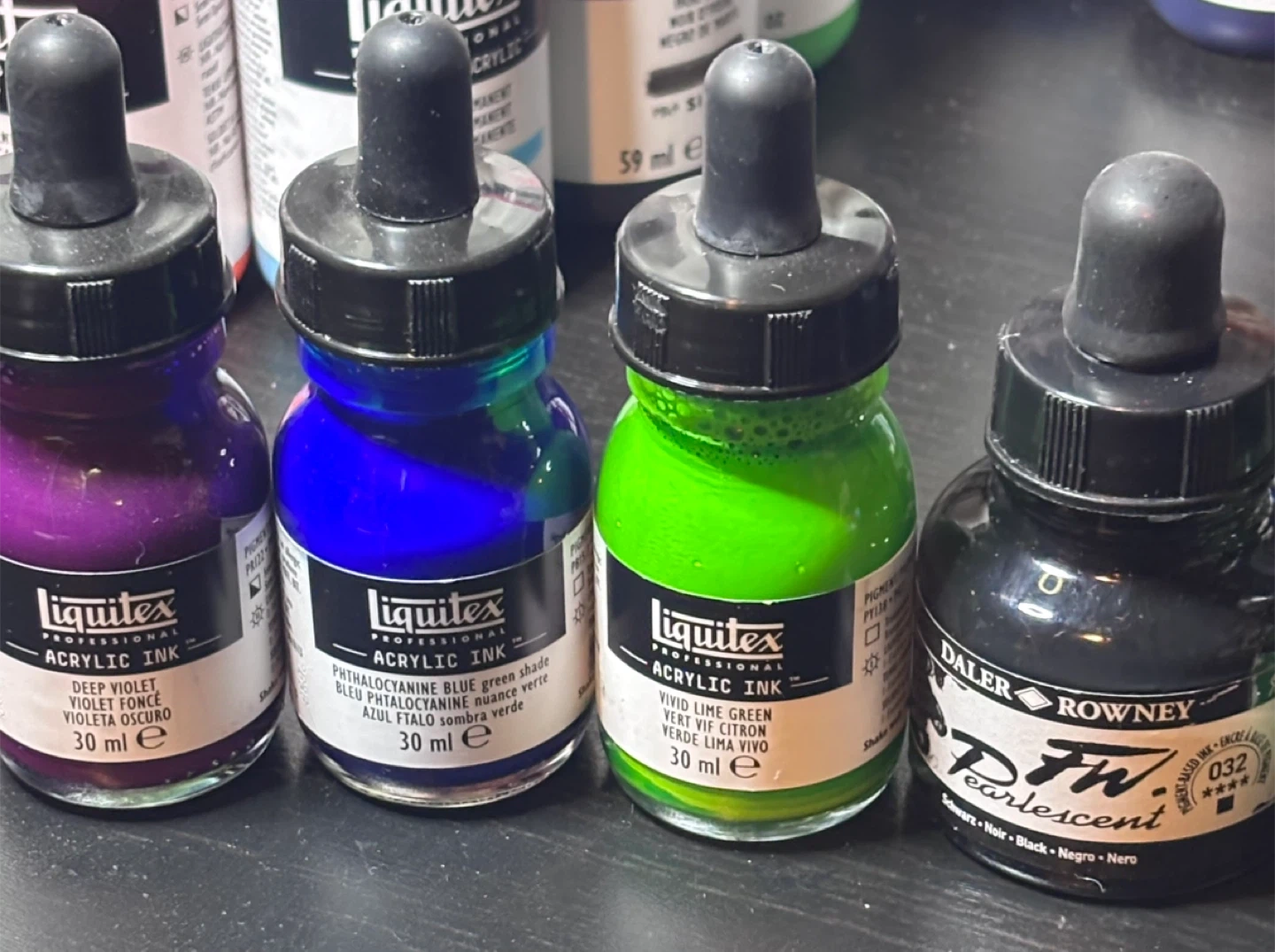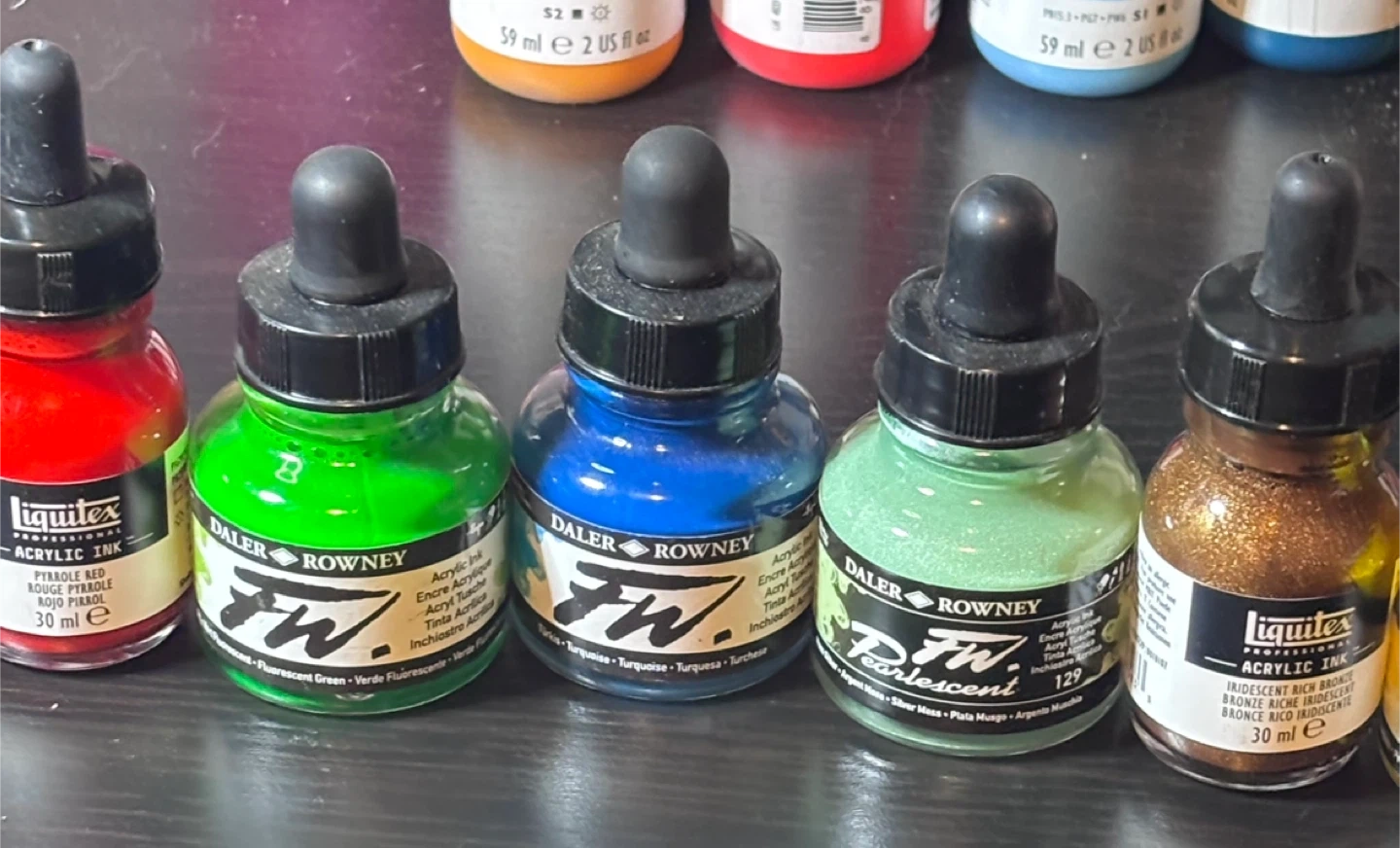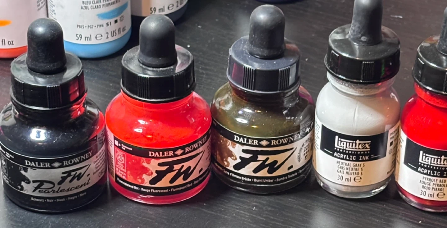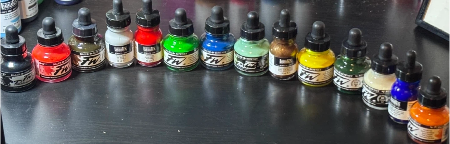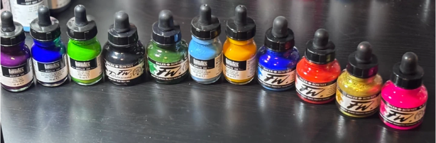 Liquitex & F.W. Acrylic Ink Lot Of 25 Bottles