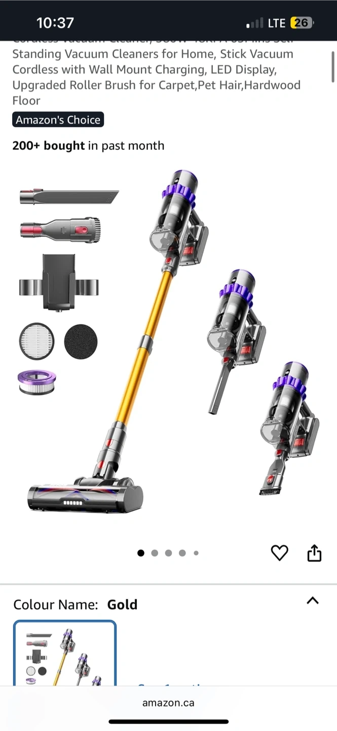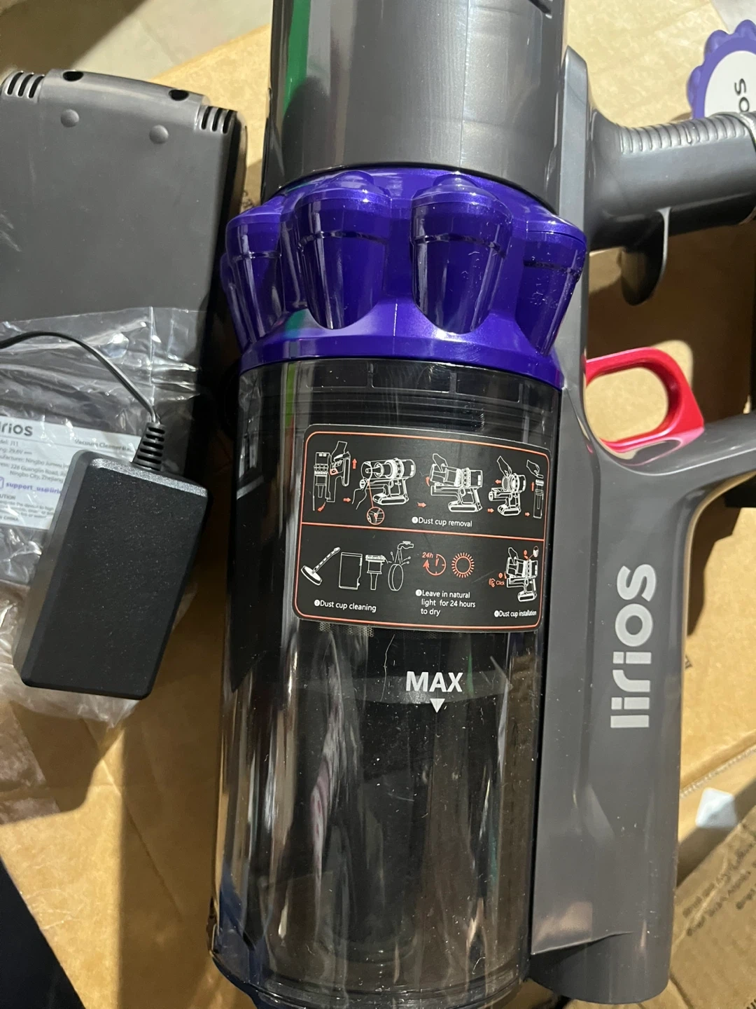 Selling a lirios Q7 cordless vacuum cleaner in gold! It's in like-new condition and comes with all the original components and the box. This stick vacuum cleaner is perfect for home use with its wall mount charging and LED display. It also features an upgraded roller brush for carpet, pet hair, and hardwood floors. It's lightweight and portable, making cleaning a breeze!