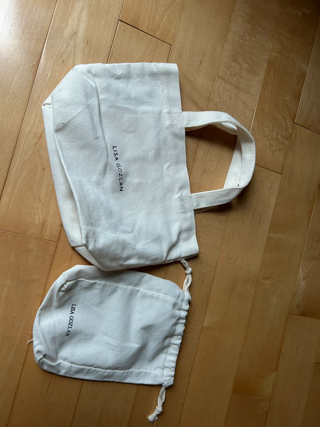 Selling a Lisa Gozlan mini tote bag along with a matching drawstring pouch! Both are in great condition and perfect for carrying your essentials. The tote has comfortable handles, and the pouch is great for smaller items.