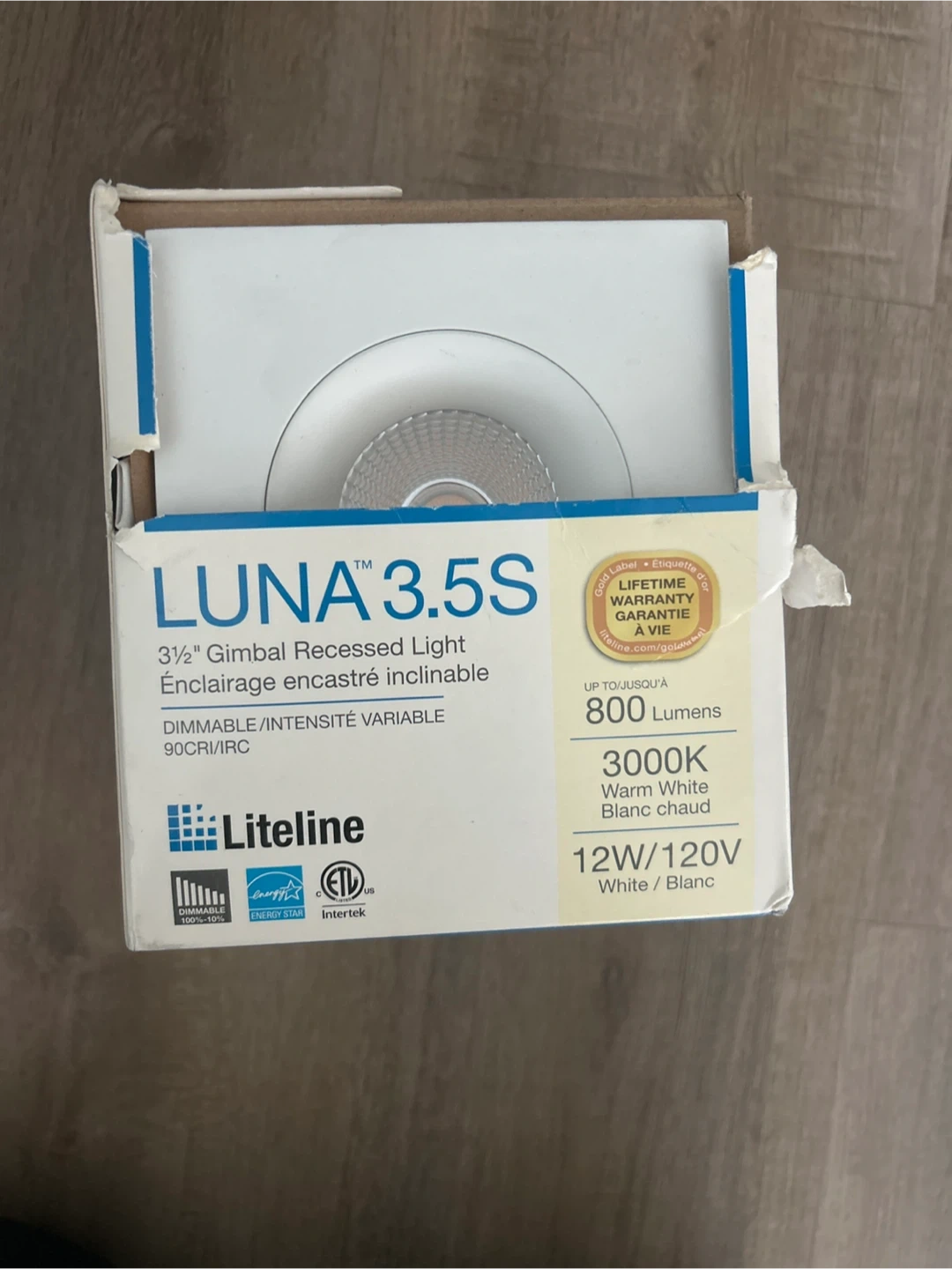 Selling a brand new Liteline Luna 3.5S gimbal recessed light, still in its original packaging! It's a 3 1/2" light with adjustable intensity, perfect for setting the right mood. It's dimmable and has a warm white (3000K) light output. It uses 12W/120V. This model is white!