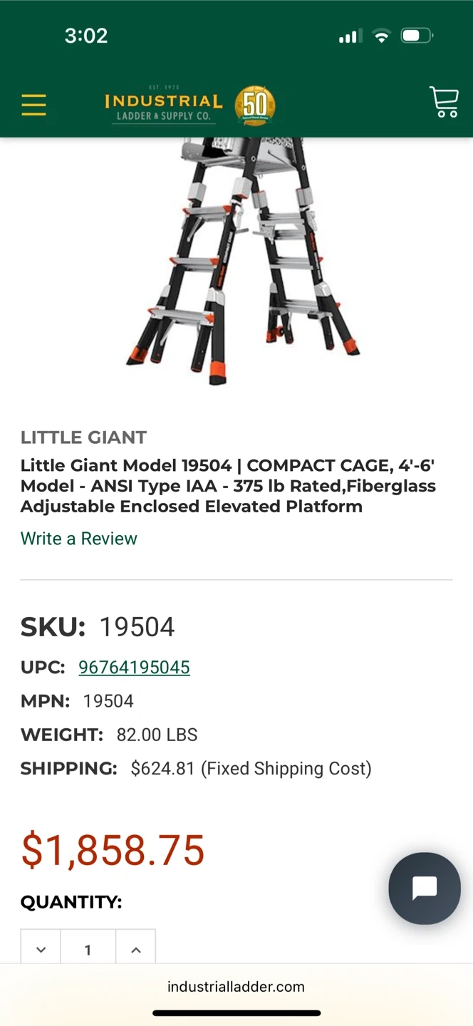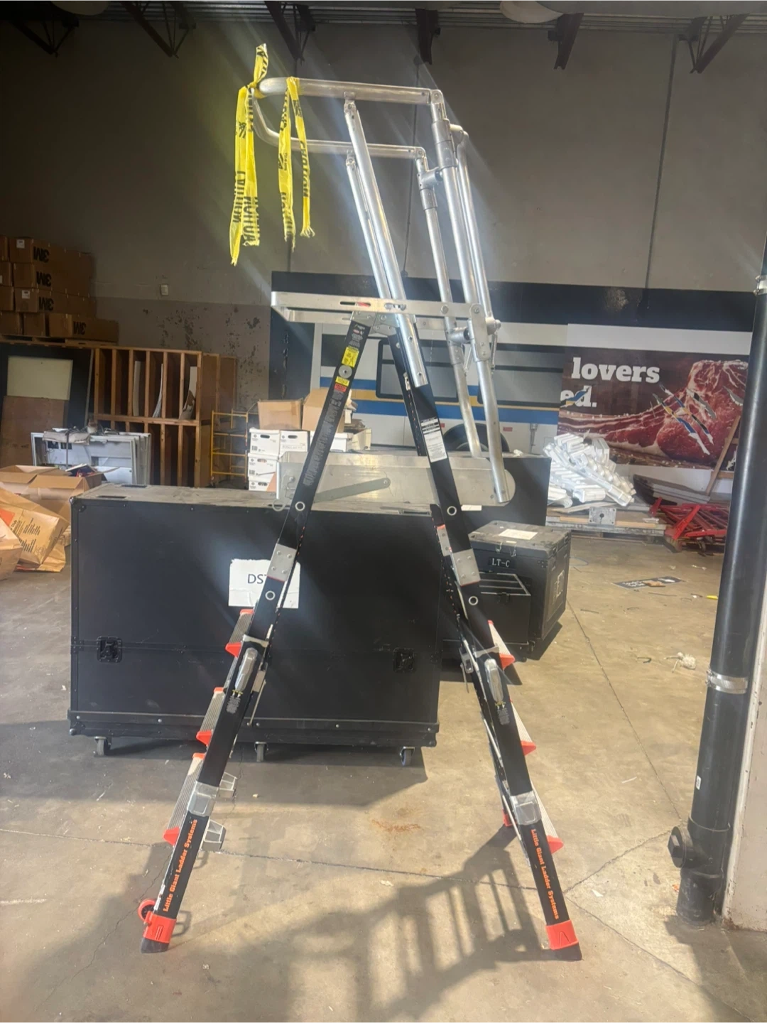 Selling a Little Giant Compact Cage ladder, ANSI Type IAA, adjustable from 4' to 6'. It's rated for 375 lbs and features a fiberglass adjustable enclosed elevated platform. Goes for $1,858.75 American plus $624 American shipping.