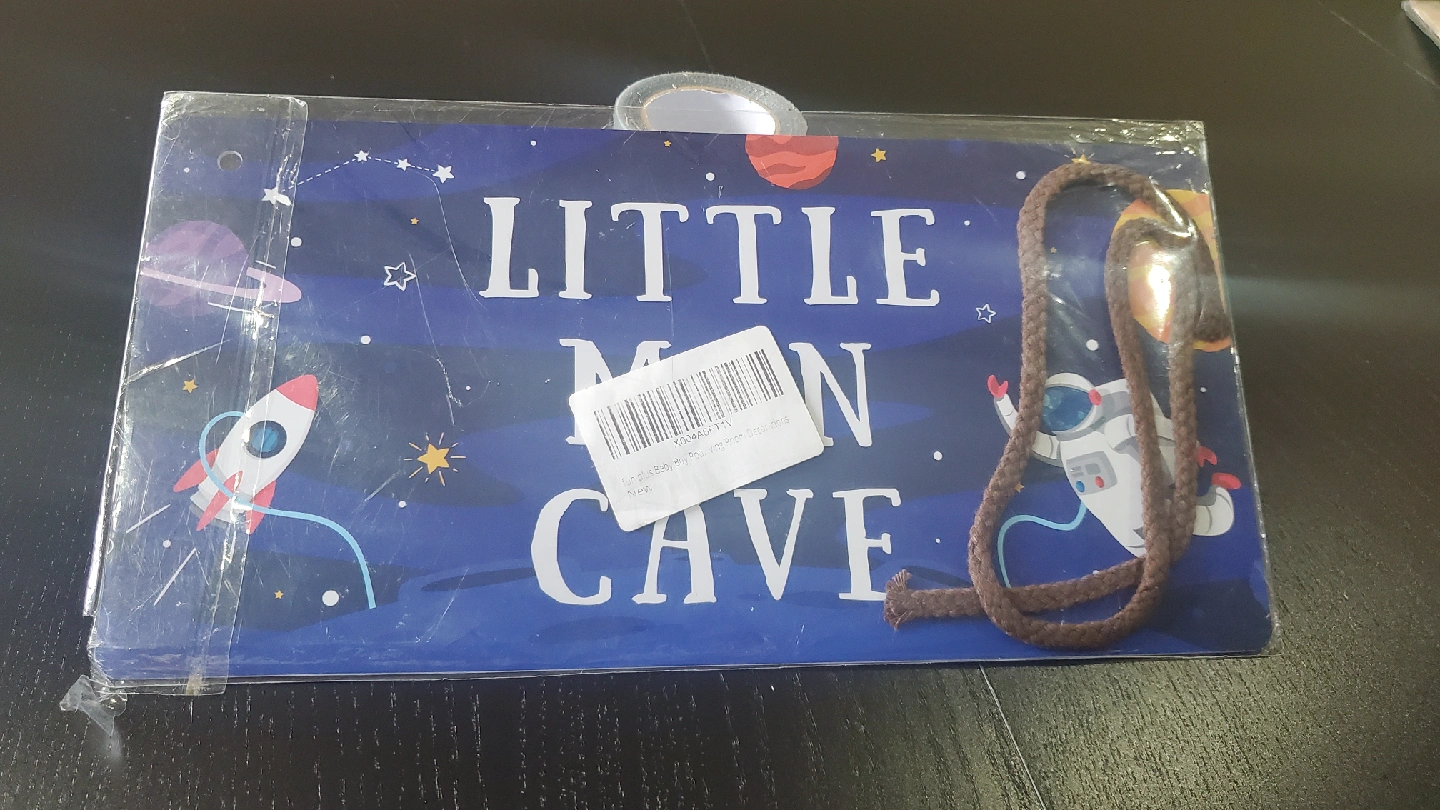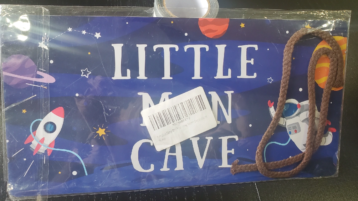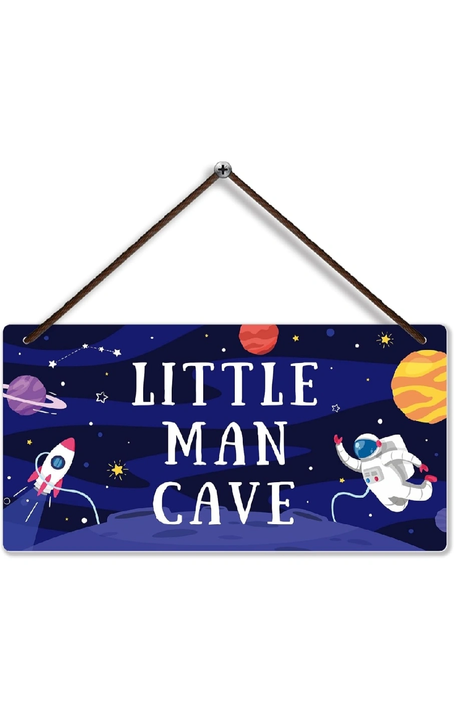 Two-sided PVC Little Man Cave Sign, Measures 6" x 12" . High quality waterproof printing, lightweight, durable, thick enough and not easy to break. Hemp rope will come with the board.