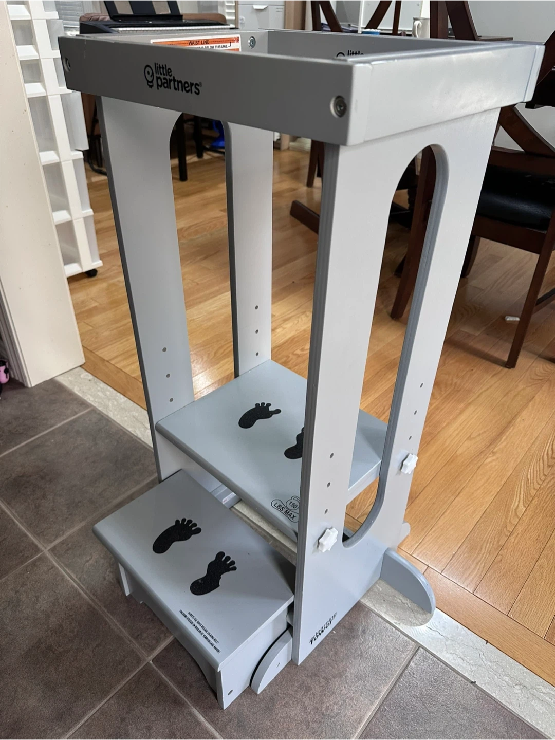 83Selling a Little Partners Learning Tower in great condition! This learning tower is perfect for helping your little one safely reach countertops and participate in cooking or other activities. It features a sturdy construction and adjustable height, making it suitable for various ages and stages. The tower has a weight capacity of 150 lbs max.