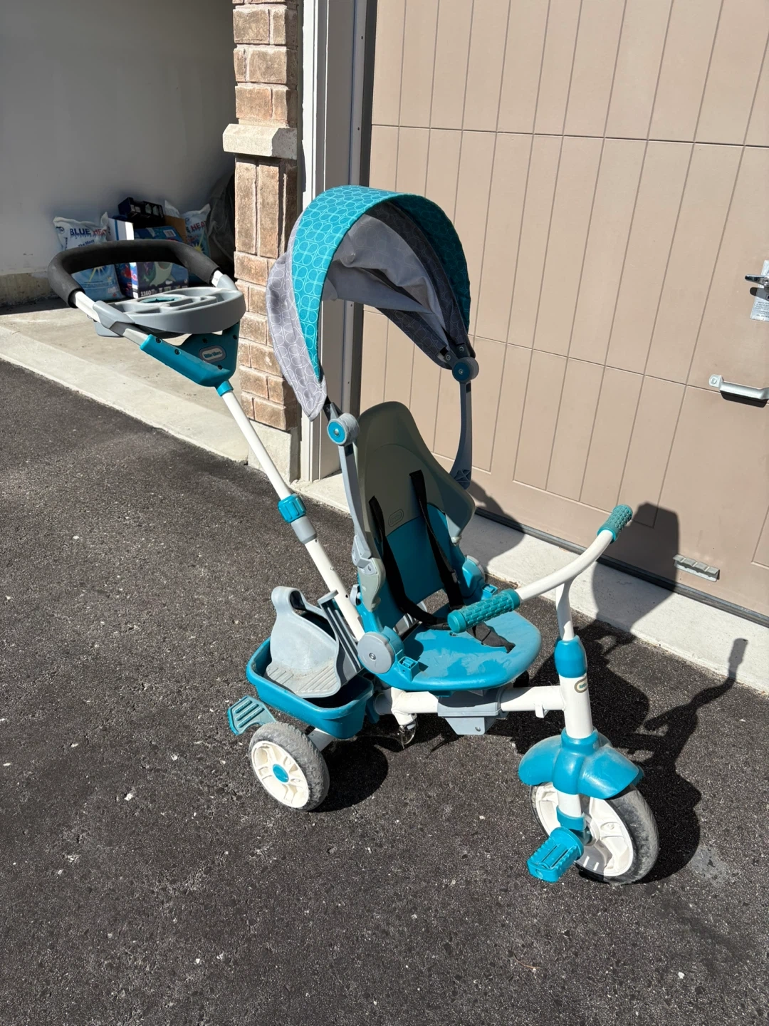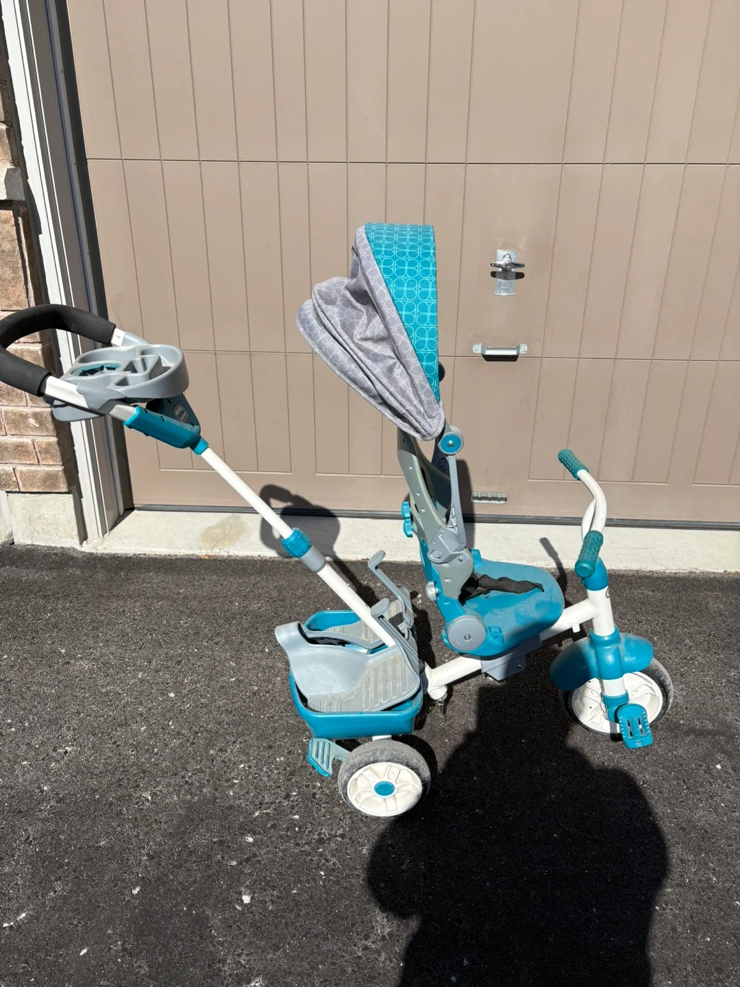 12Selling a Little Tikes 4-in-1 Trike in blue and grey. It's in great condition and ready for a new little rider! This trike grows with your child, offering different stages of use as they develop their motor skills. Perfect for fun outdoor adventures!