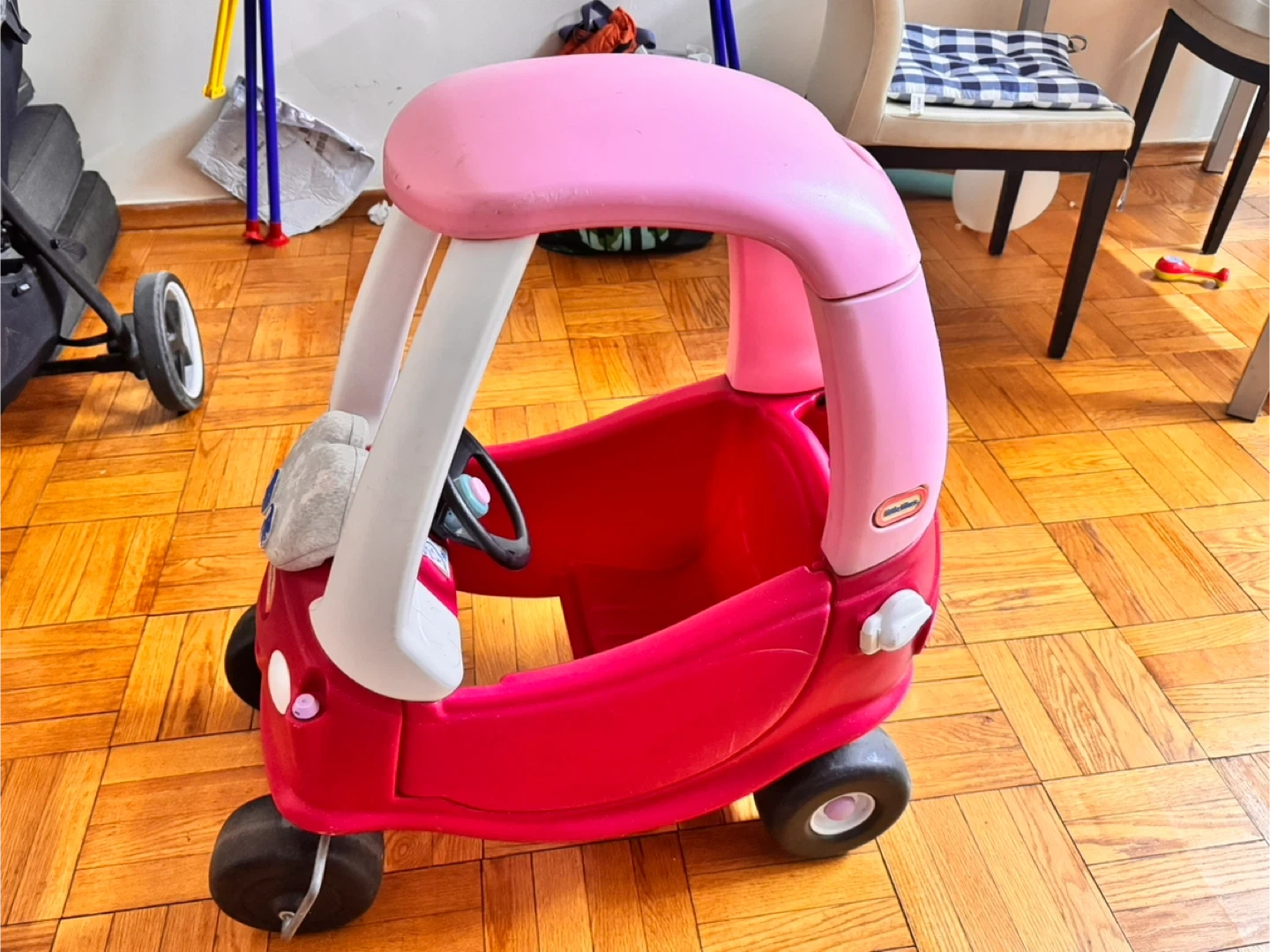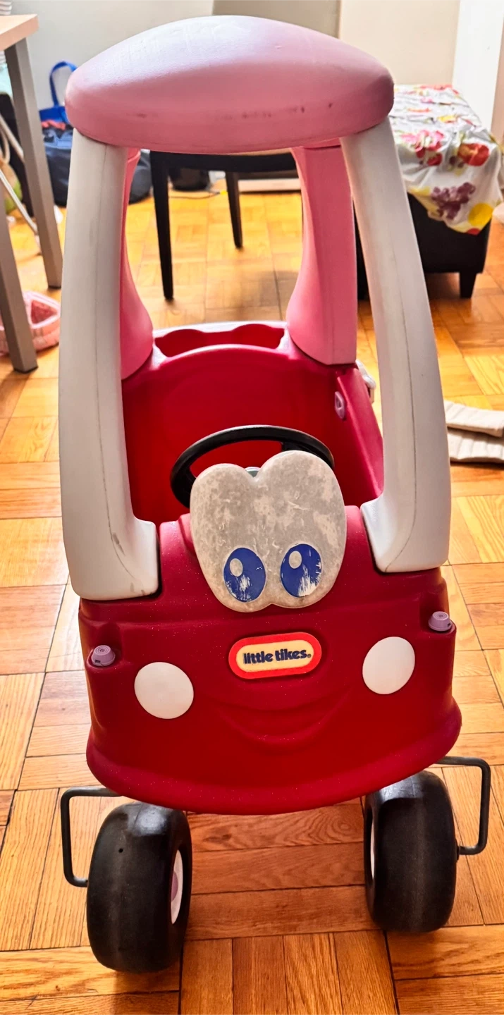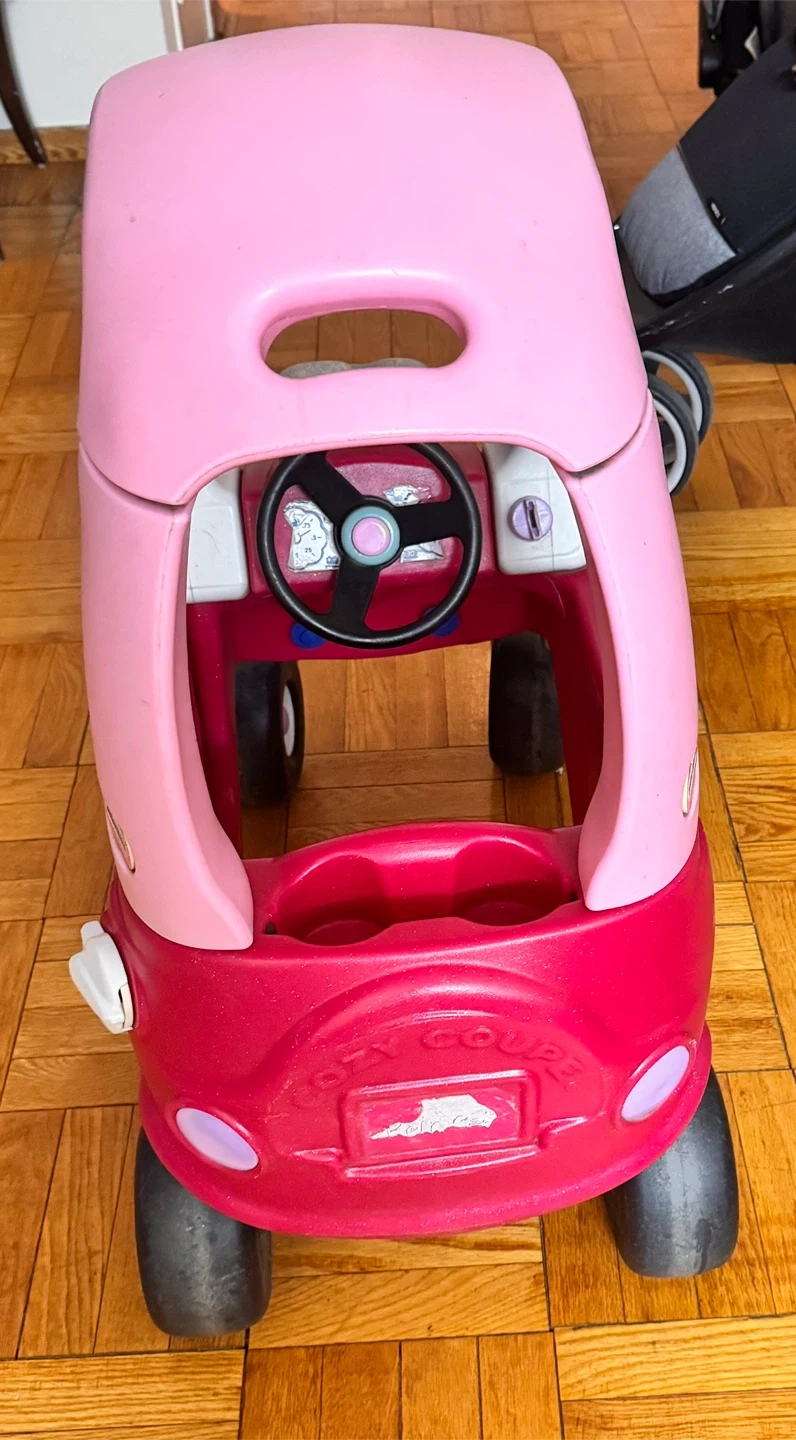 Selling a Little Tikes Cozy Coupe! It's pink and red and ready for a new kiddo to enjoy. It has some signs of use, but lots of life left for fun adventures. Great for toddlers!