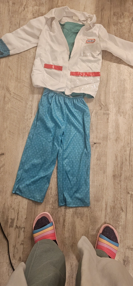 10Little Tikes doctor costume in great condition! Includes the white coat and blue/green pants. Perfect for dress-up and imaginative play white coat needs ironing