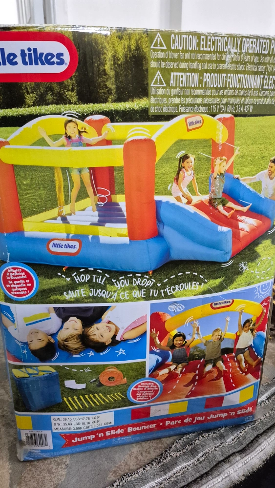 13Selling a Little Tikes Jump 'n Slide Bouncer! It's in great shape and ready for some fun. Includes the blower and stakes to keep it secure. Your kids will love hopping and sliding on this bouncer! I used it maybe 3 times and it is like new. sadly, I'm selling it due to not having the space for it.