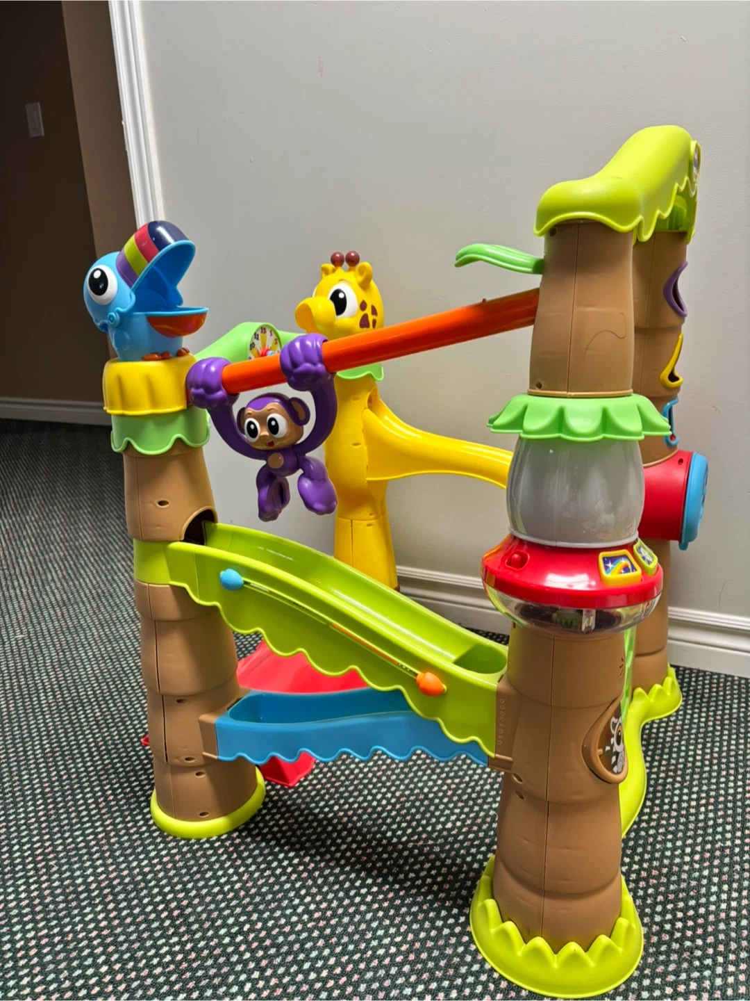 65The gym features bright colours and fun animal characters. Perfect for babies and toddlers! Was purchased used, buttons did not work. We used it as a crawling/standing structure for our younger child when they were learning to stand and they absolutely loved it!