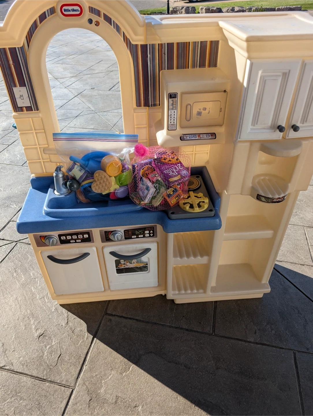 Selling a gently used Little Tikes kitchen and grill playset. It comes with lots of accessories for hours of fun! Perfect for kids who love to play pretend chef or host backyard barbecues. The kitchen includes a sink, oven, microwave, and stovetop, while the grill has realistic grilling sounds and accessories