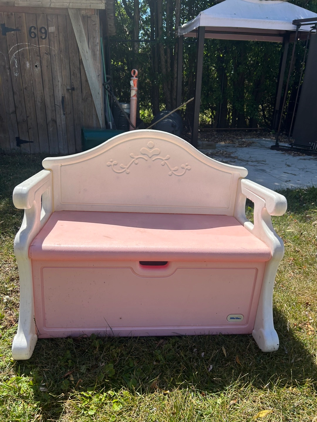 Selling a Little Tikes toy box bench in pink and white! It's a great way to store toys and provides a cute little seat for your kiddo. Perfect for playrooms or bedrooms!