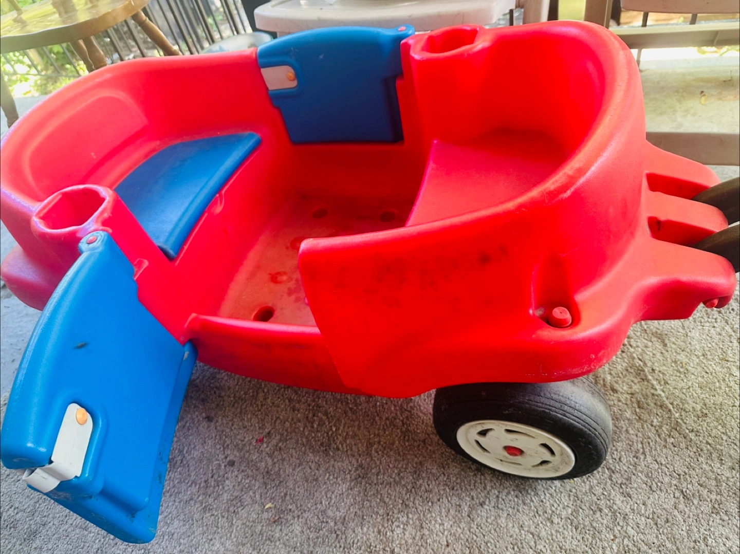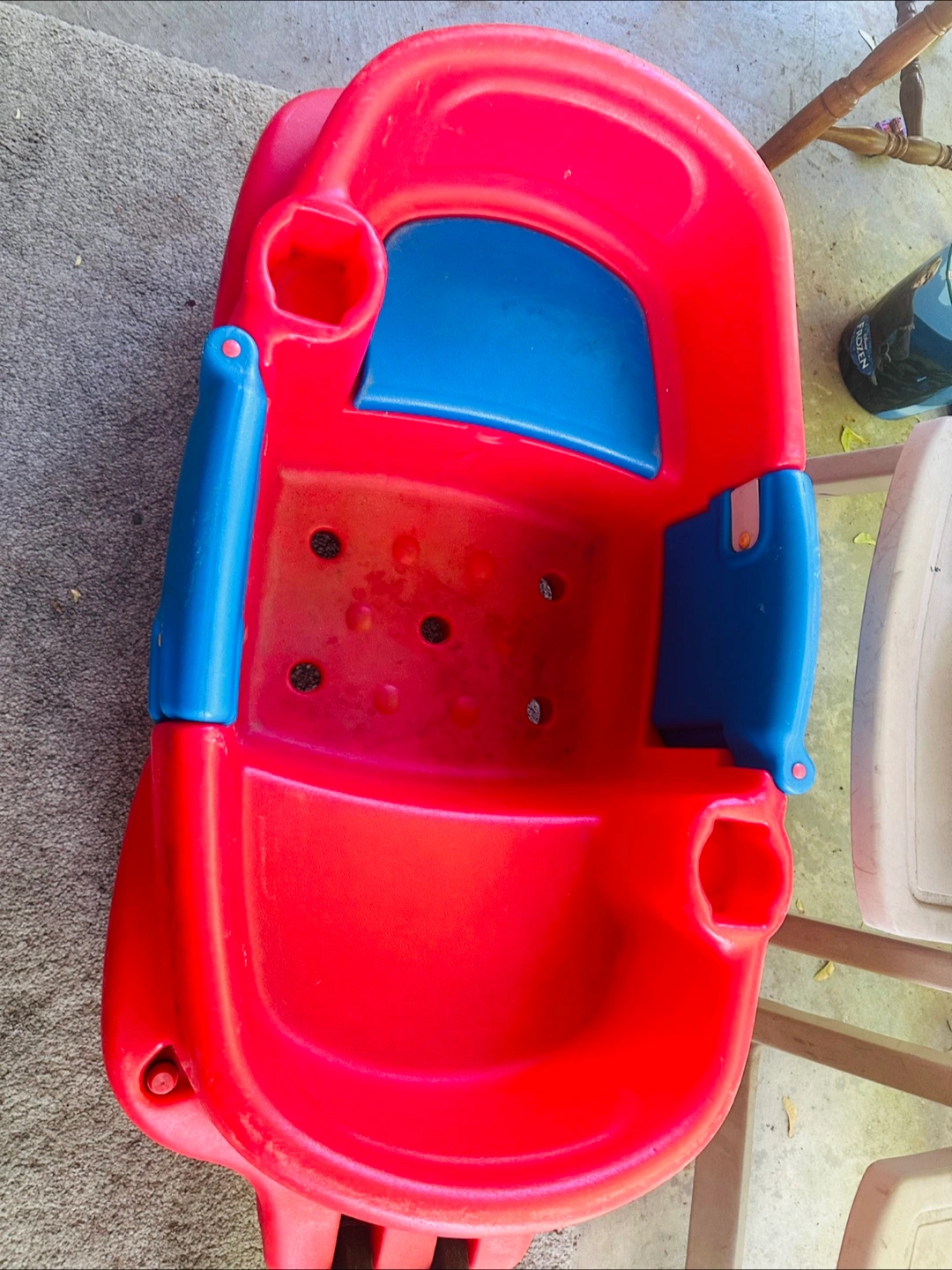 Selling a gently used Little Tikes wagon in red and blue. It's perfect for toddlers and preschoolers. The wagon has some signs of wear, but it's still in good condition and ready for more adventures! Recently washed just little water stuck inside will get evaporate soon
