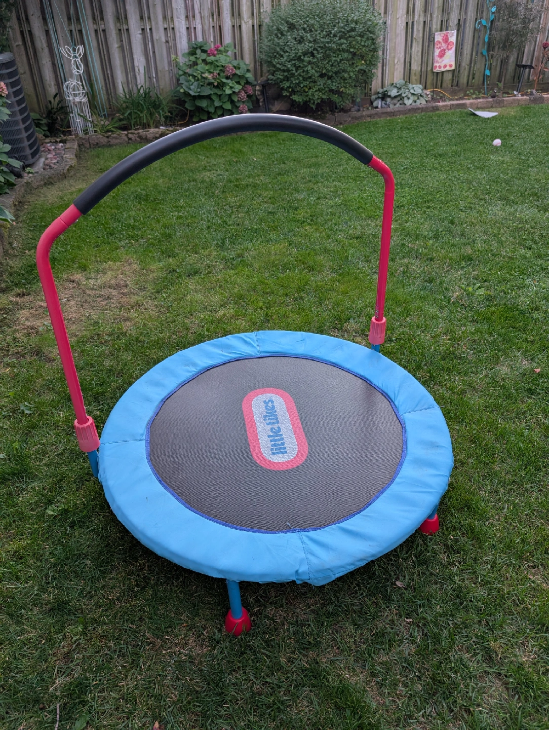 Selling a Little Tikes trampoline! It's in good condition and perfect for kids to bounce around and have some fun. Great for indoor or outdoor use