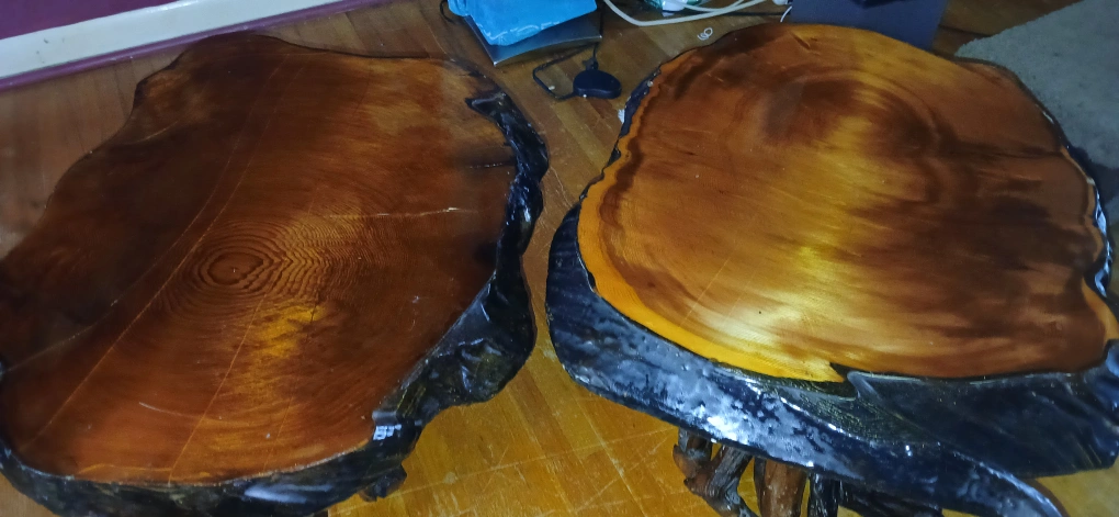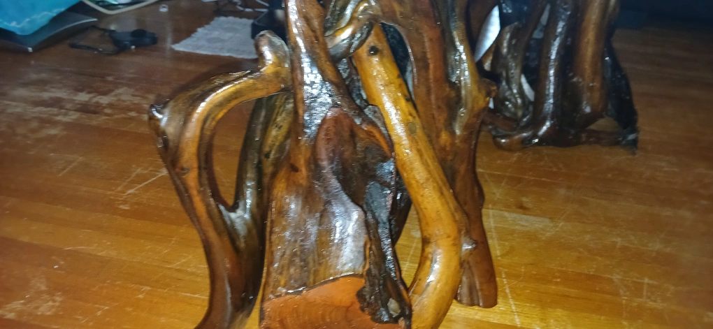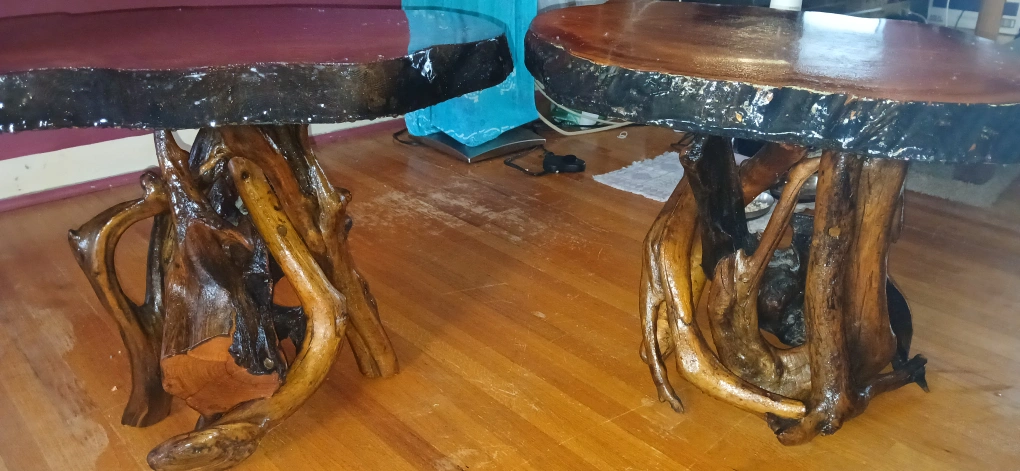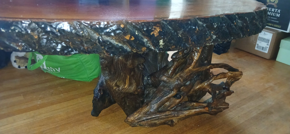 Unique live edge wood coffee table, perfect for adding a rustic touch to your living room! The base is made of natural wood roots, making each table one-of-a-kind. Heavy solid pieces . 300