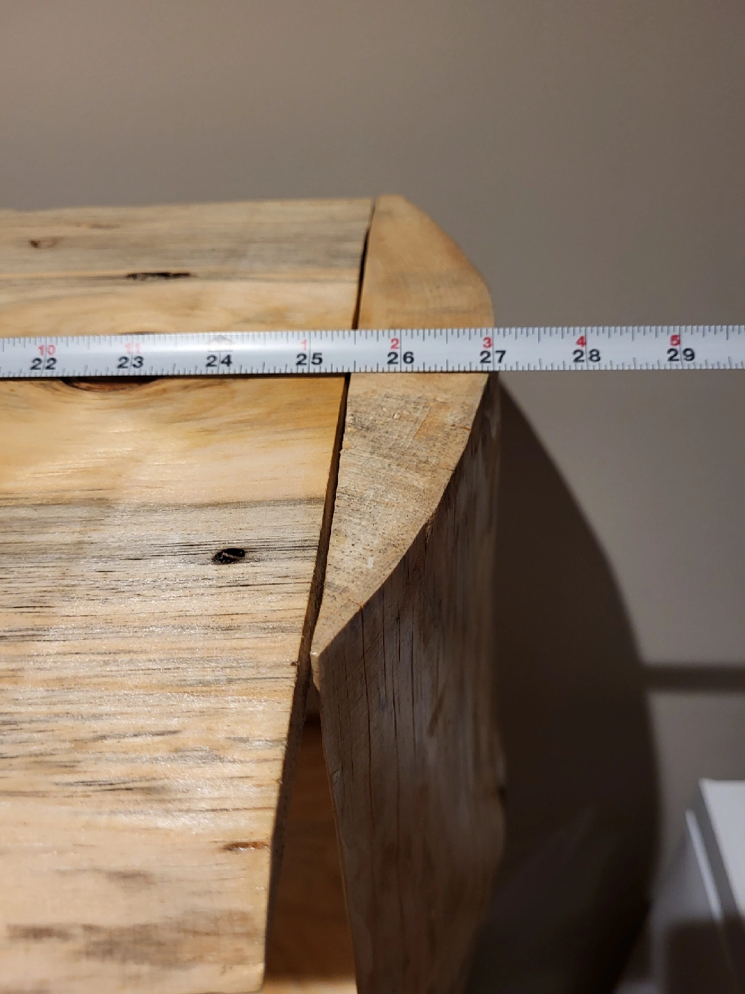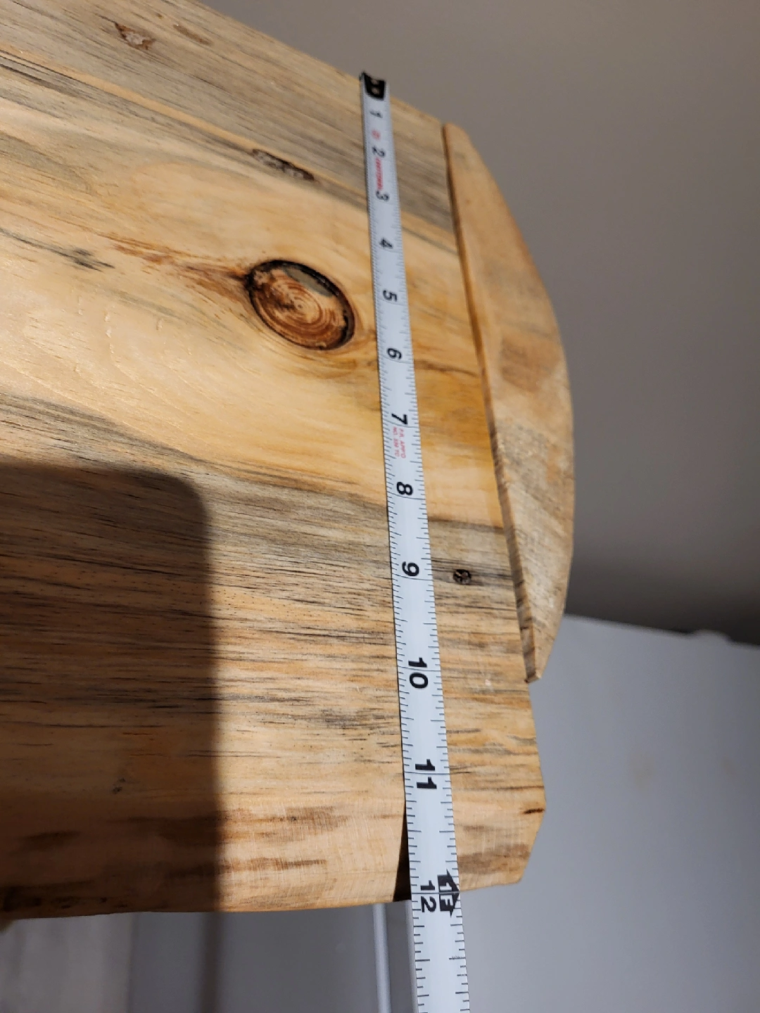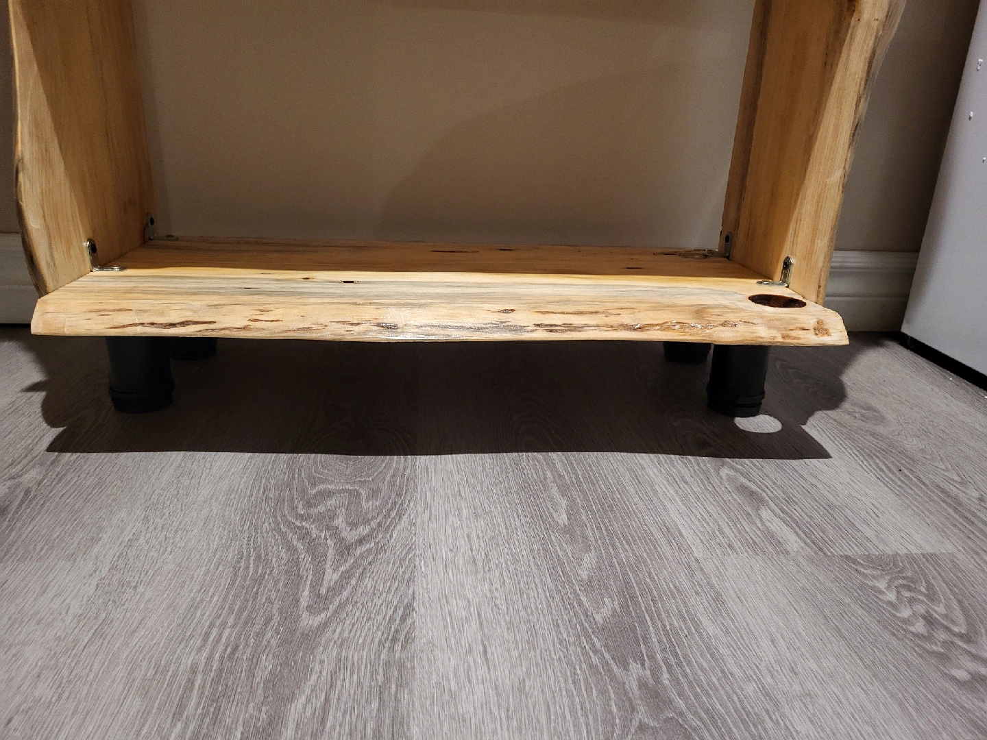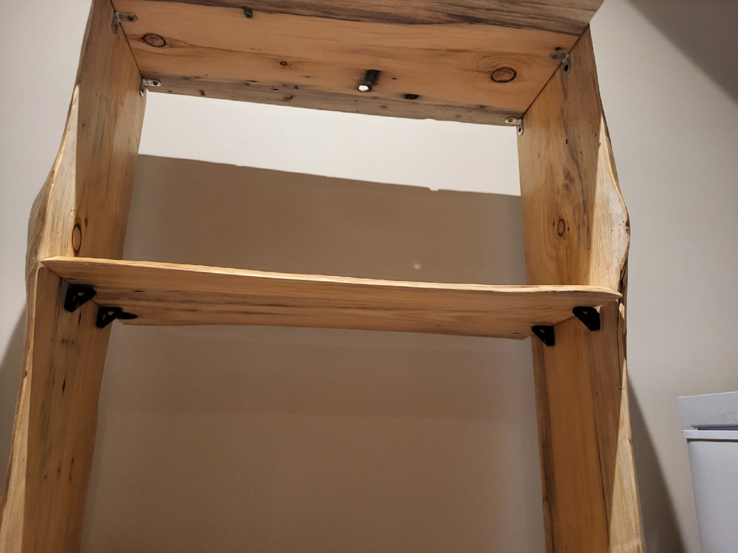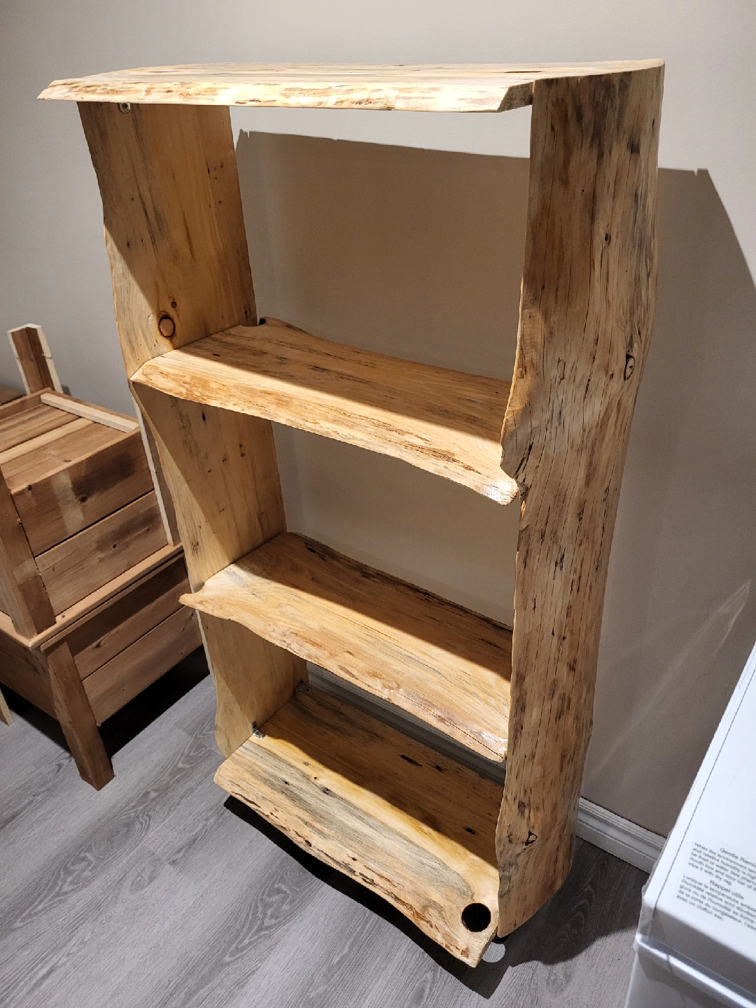 Selling a unique rustic wooden shelf! It has a very natural, raw wood design. Looks like it is made from a tree trunk. It has 3 shelves and is in great condition. Measurements are in the pictures.