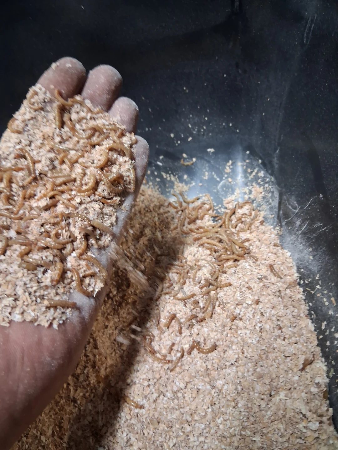 65Live meal worms, harvested weekly, grown in wheat barn only no additives. $2.50 for 50 count $20.00 for 500 count. Pickup only at our Farm, 1703 innisfil Beach Road 7 days a week 12 noon to 6 pm
