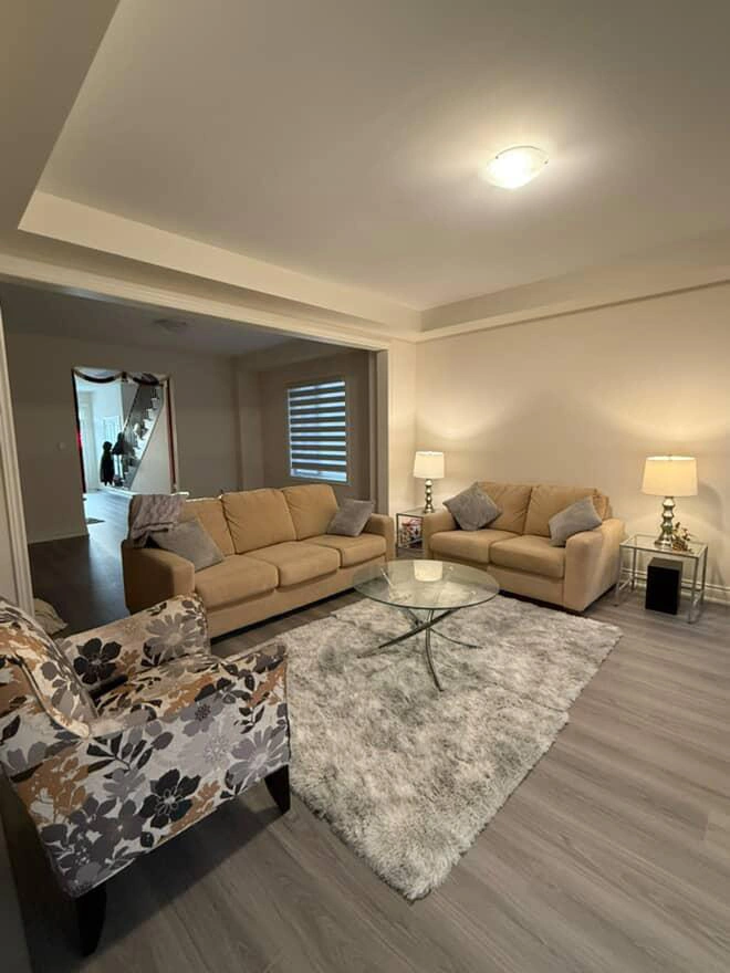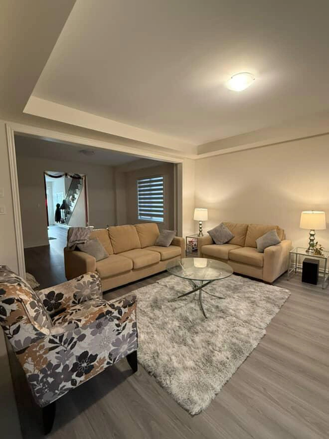 10Selling a living room set that includes 3 seater sofa, Love seat, Accent chair, coffee table, lamps, tables for lamp and pillows. fur carpet not included. Excellent condition. No Damages. pet free, smoke free home. DM for details!! No delivery available. Must pickup.