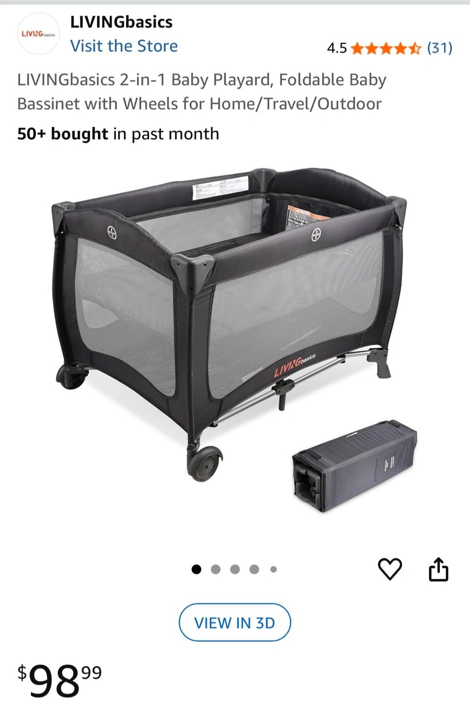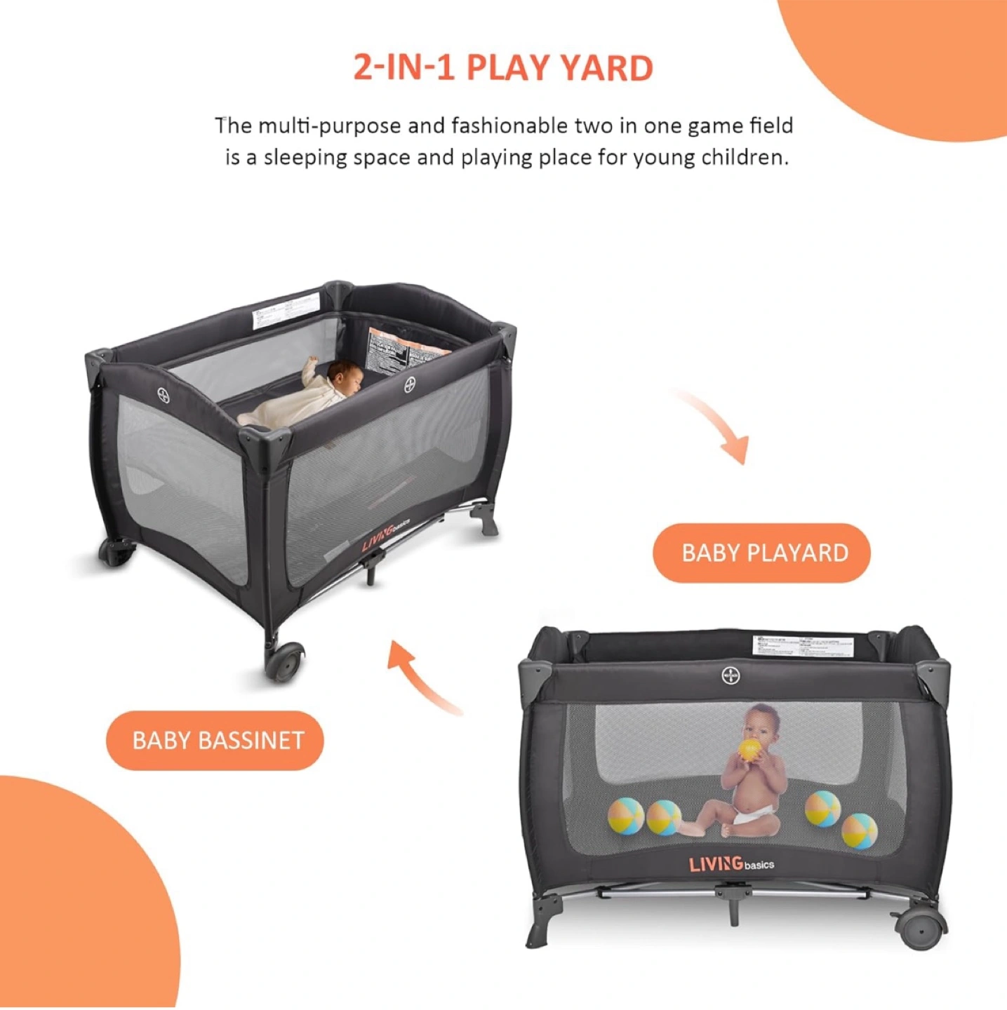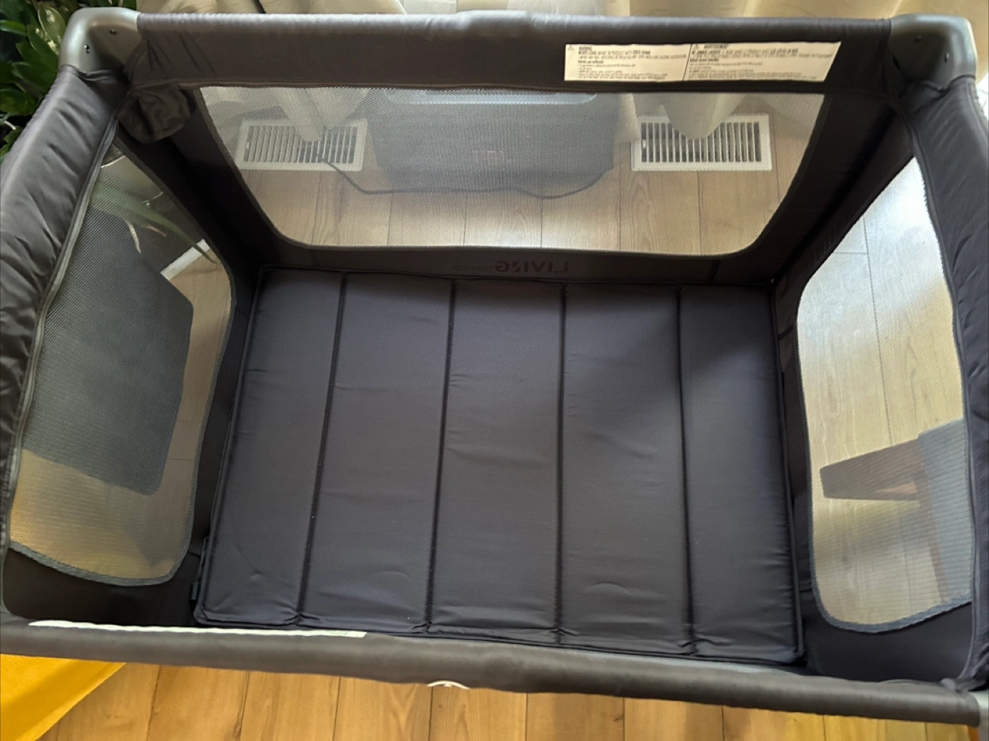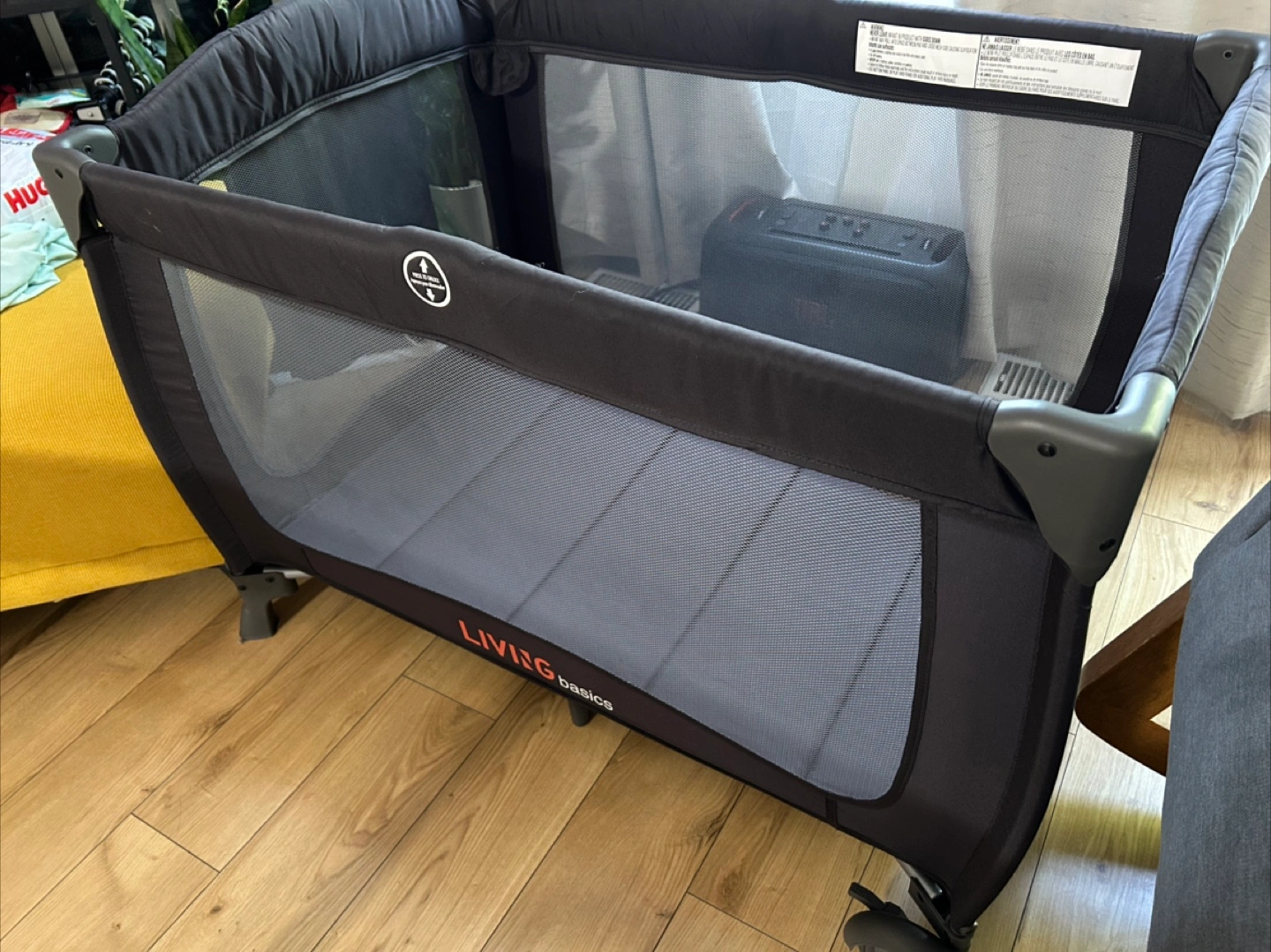 Selling a LIVINGbasics 2-in-1 baby playard that's perfect as both a bassinet and a playard! It's foldable and has wheels, making it easy to move around the house or take with you when travelling. Originally bought for $98.99 Selling for $60, slightly used and in perfect condition. Reason for selling: Upgraded to a bigger playpen