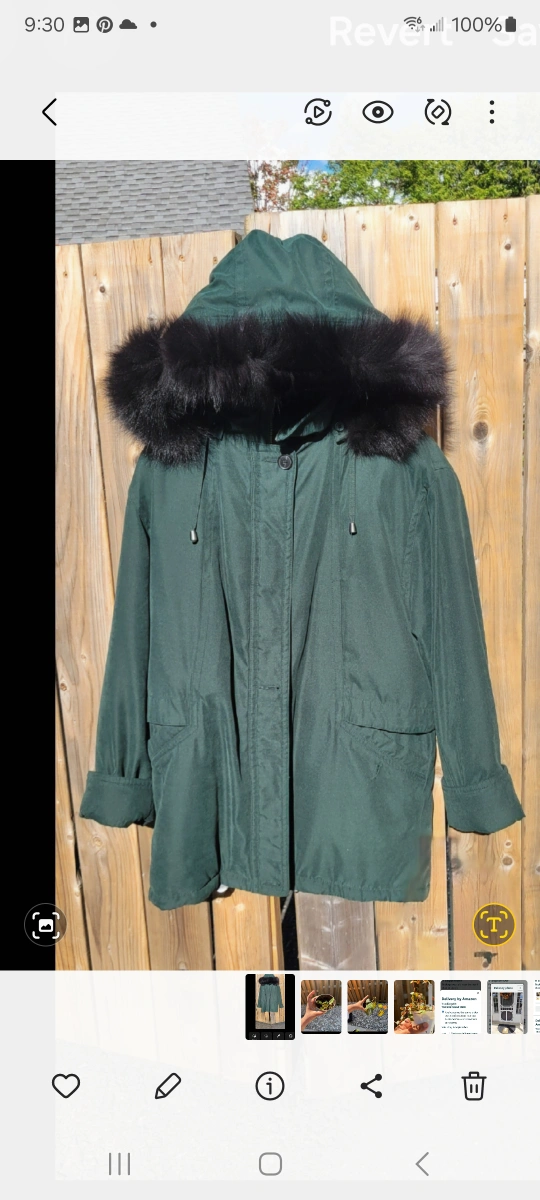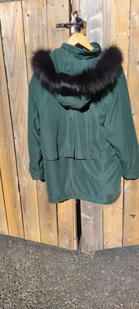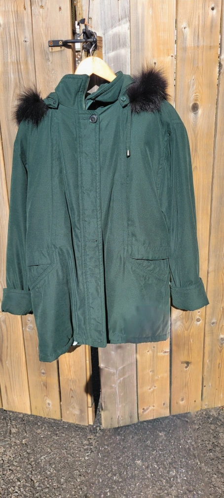 Selling a cozy green winter parka! It has a nice fur trim around the hood to keep you extra warm during those cold Canadian winters. It's in great condition and ready for a new home!