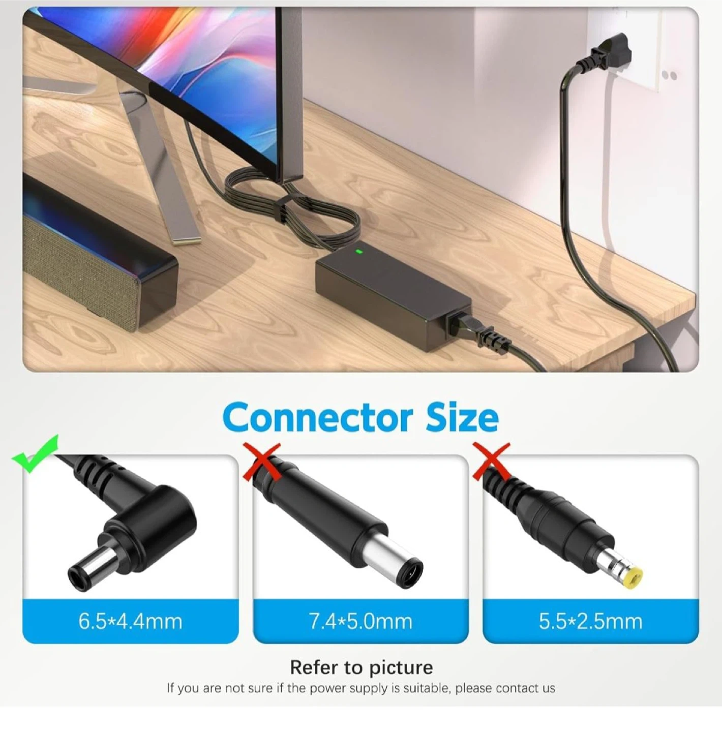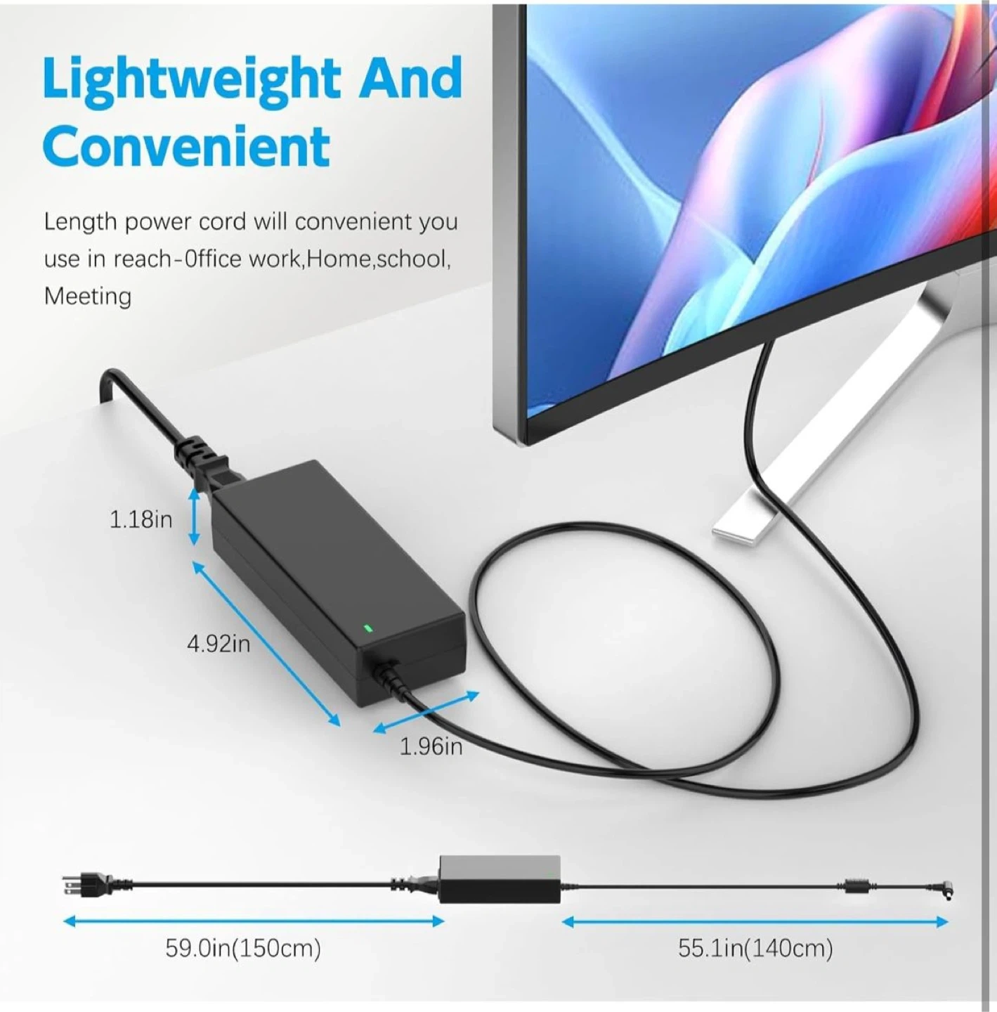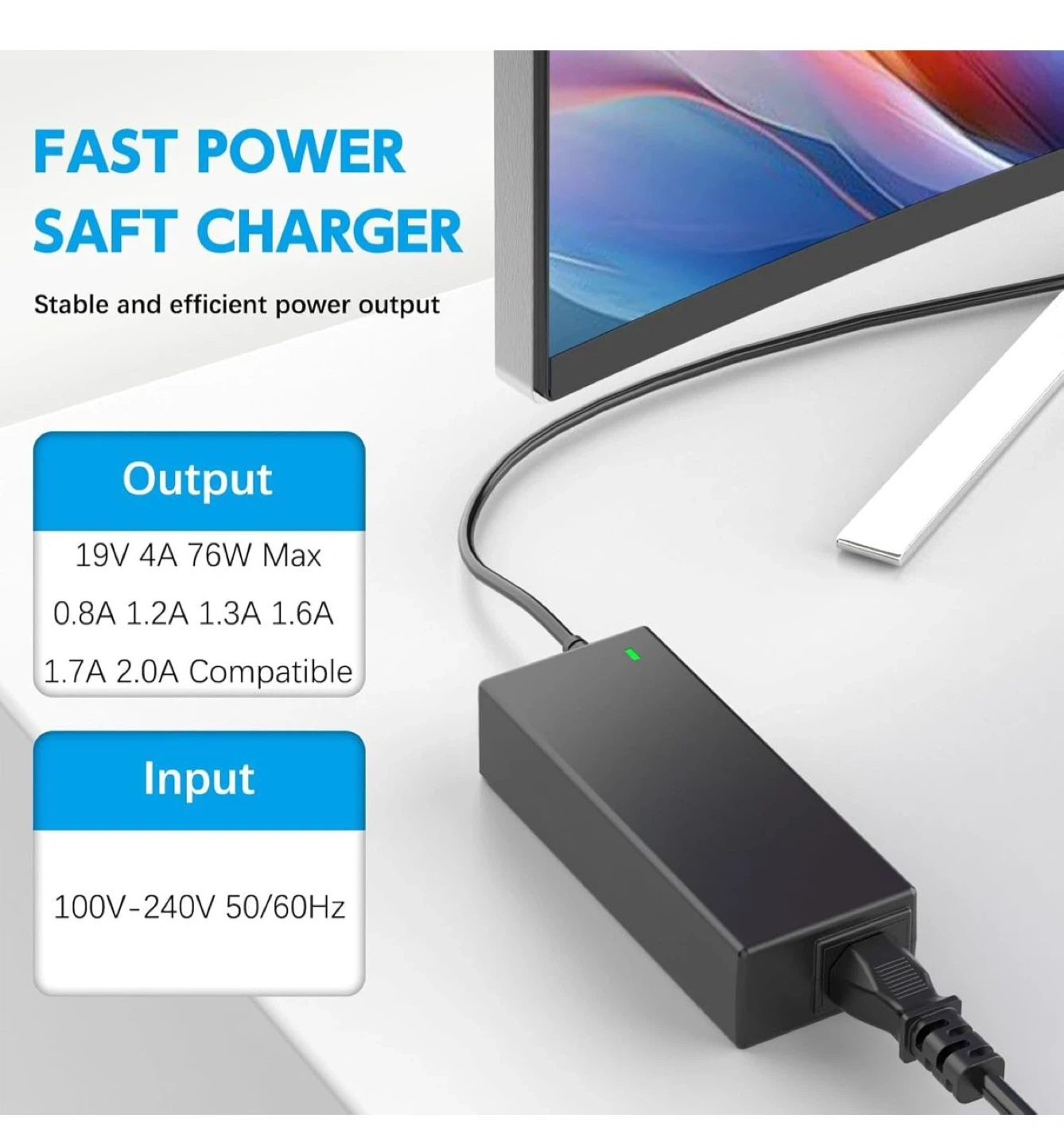 98Top highlights Brand LJO-EEIH Compatible devices Monitors Compatible phone models Compatible with LG Monitor 19" 20" 22" 23" 24" 27" 29" 32" 34" Input voltage 240 Volts Amperage 4 Amps Total USB ports 1 【Specifications】- LJO-EEIH monitor adapter offers a robust power solution with a global voltage range of 100-240V and outputs at 19V 4A 76W Max. It is equipped with a 6.5*4.4mm connector with a pin inside, ensuring a secure and reliable connection to your devices