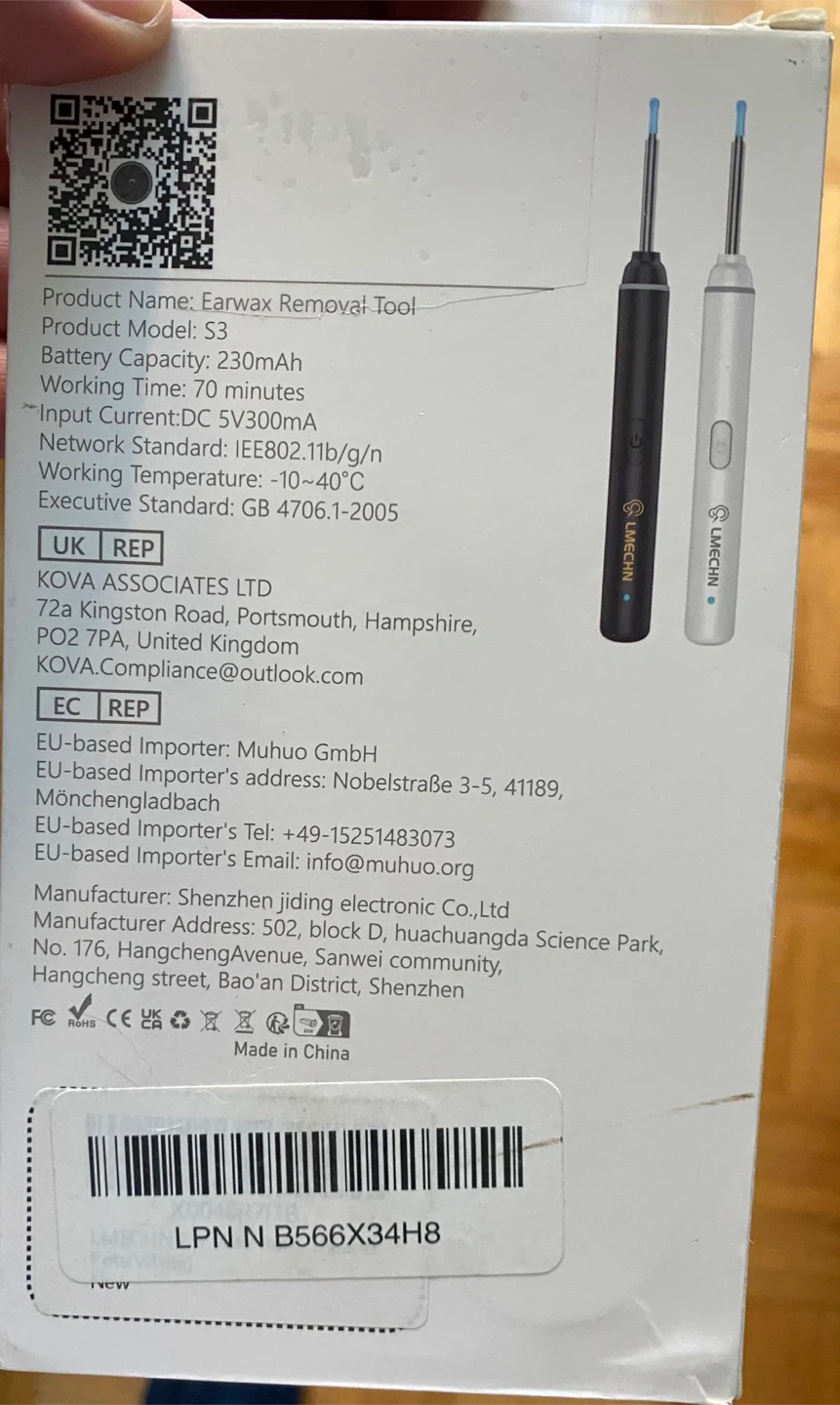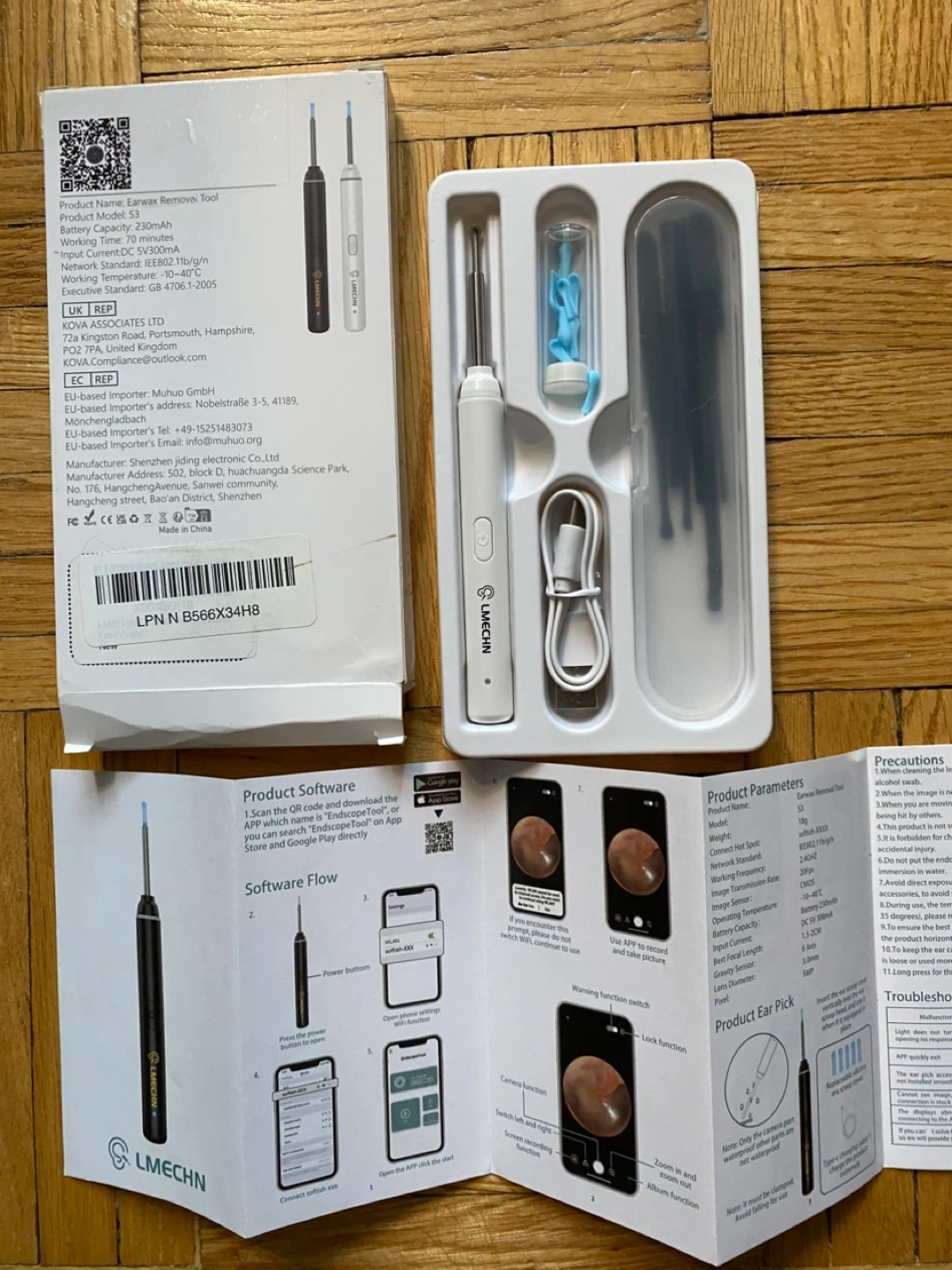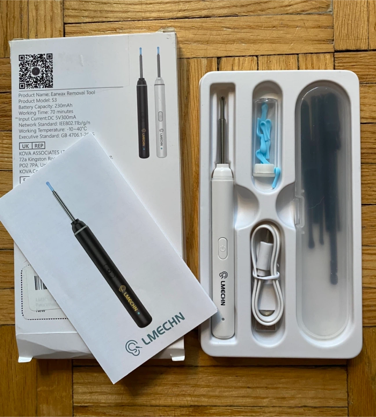 Selling a brand new LMECHN Earwax Removal Tool, still in its original packaging! It's a safe and effective way to clean your ears. Comes with all the original accessories and instructions. The device has a battery capacity of 230mAh and a working time of 70 minutes. It connects via WiFi and allows you to see inside your ear with the EndoscopeTool app. Super handy and easy to use!