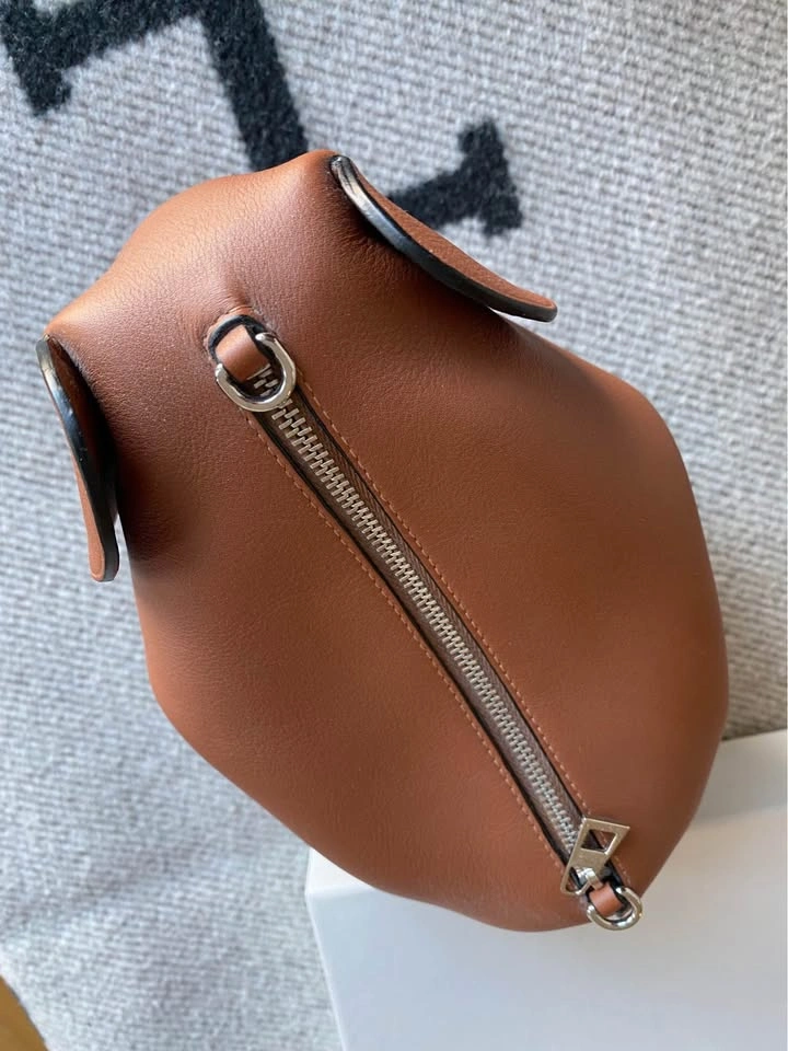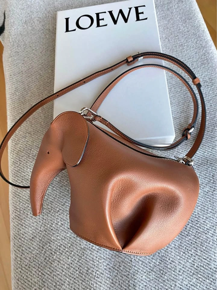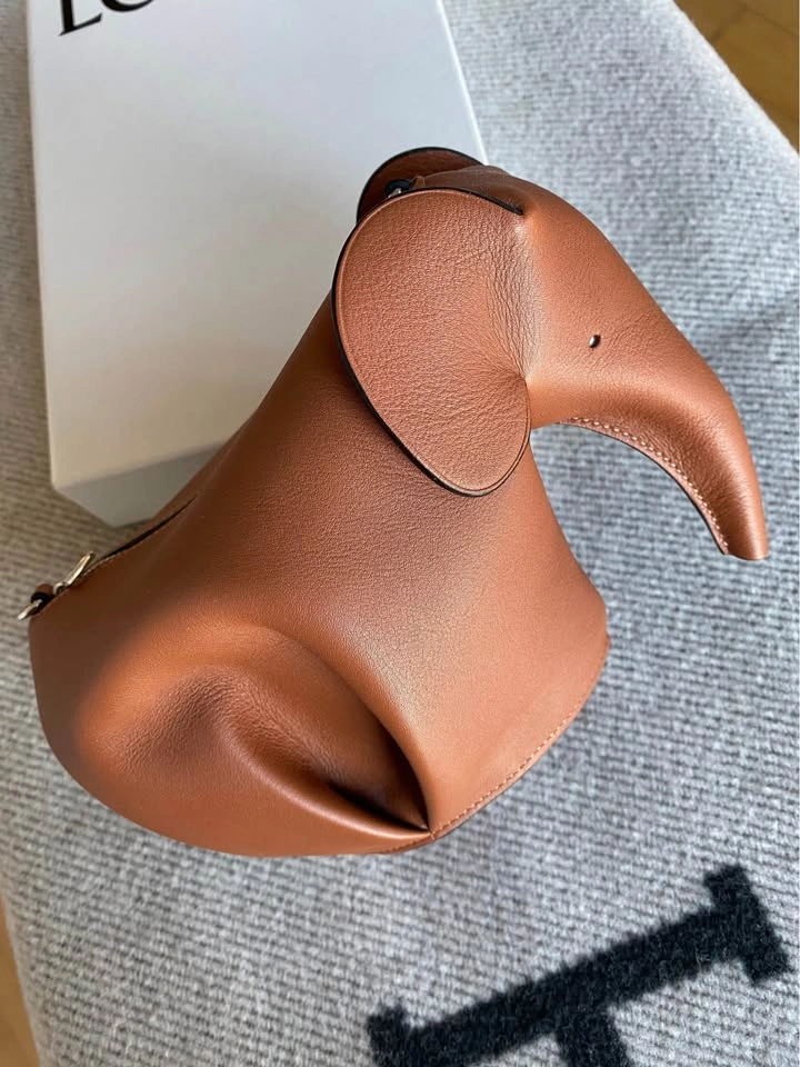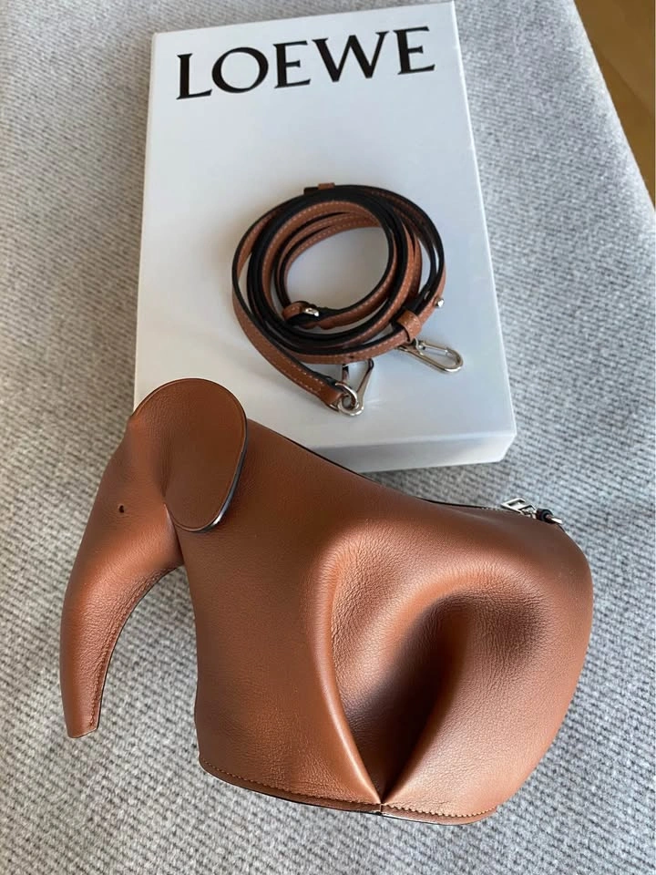 66This LOEWE Mini Elephant Shoulder Bag is a whimsical and stylish accessory, crafted from high-quality calf leather in a unique elephant shape with a top zip closure and adjustable shoulder strap. Hand crafted in Spain with utmost finest calf leather. This item is in brand new excellent condition. Color is Tan. This adorable bag is more than just a purse; it's a conversation starter! It's perfect for adding a touch of fun to any outfit. If you're seeing this ad, the elephant is still available and ready for a new home!
