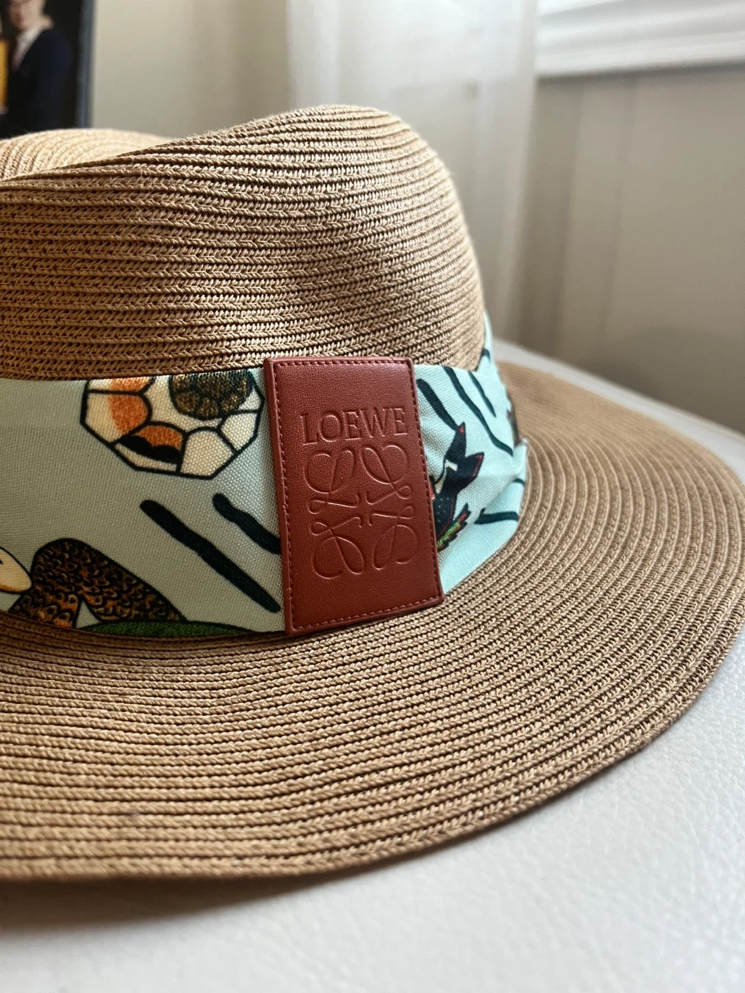 Stylish Loewe Paula's Ibiza straw hat in excellent condition. This hat features a unique design with a patterned band. Perfect for adding a touch of elegance to your summer outfits!