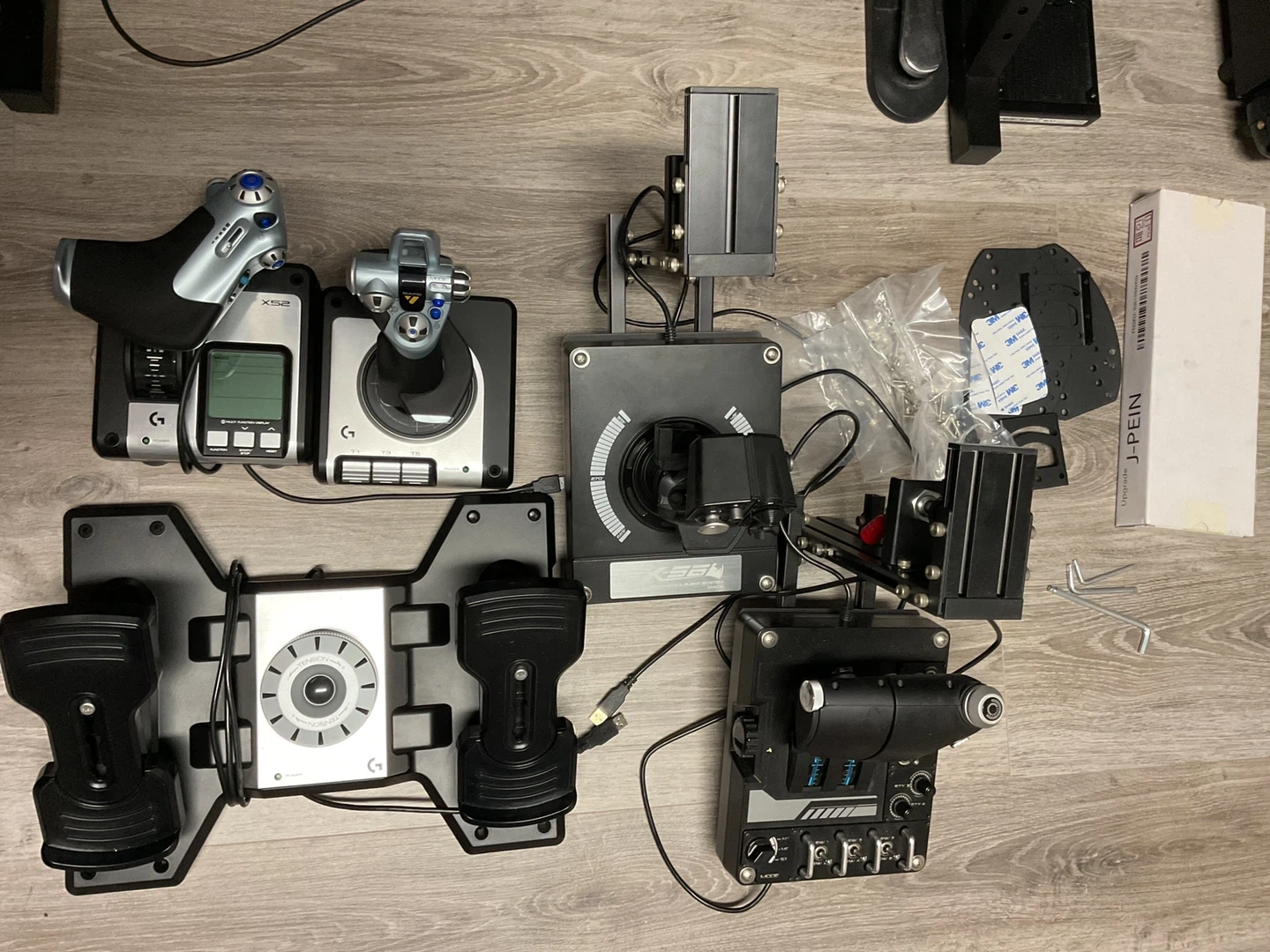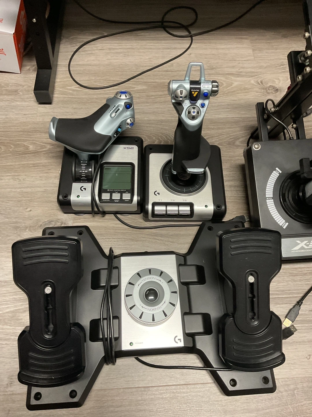 Selling a collection of Logitech flight simulator gear! Includes joysticks, rudder pedals, and throttle quadrant. Perfect for setting up a realistic flight sim experience at home. All in good working condition and ready to use