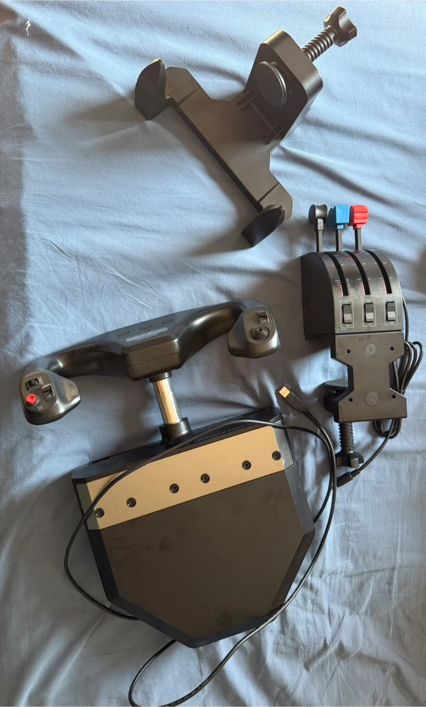 Selling a Logitech flight simulation setup! Includes rudder pedals and throttle quadrant. Perfect for flight simulator enthusiasts looking to enhance their experience. Everything is in like new condition - used once - boxes available