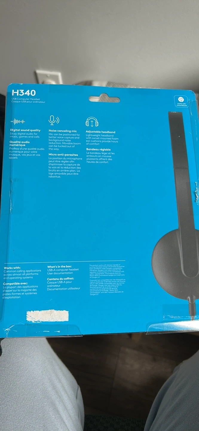 10Selling a brand new Logitech H340 USB computer headset, still sealed in its original packaging! It features digital sound quality, a noise-cancelling mic, and an adjustable headband with swivel-mounted foam ear cushions for hours of comfort. Works with common calling applications across most all platforms. What’s in the box: Common calling applications headset, User documentation