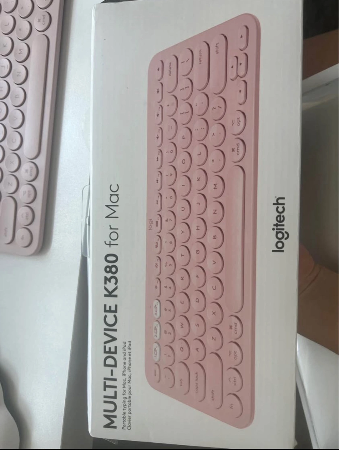 10Selling a Logitech K380 Multi-Device keyboard in rose colour. It's in great condition and comes with the original box. Perfect for using with your Mac, iPhone, or iPad. It's a portable keyboard for typing on the go