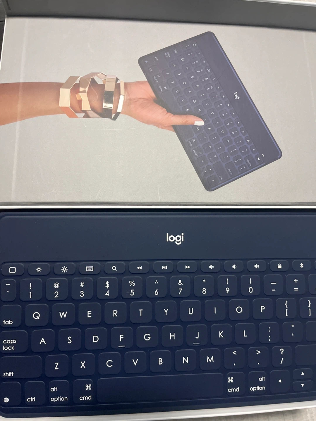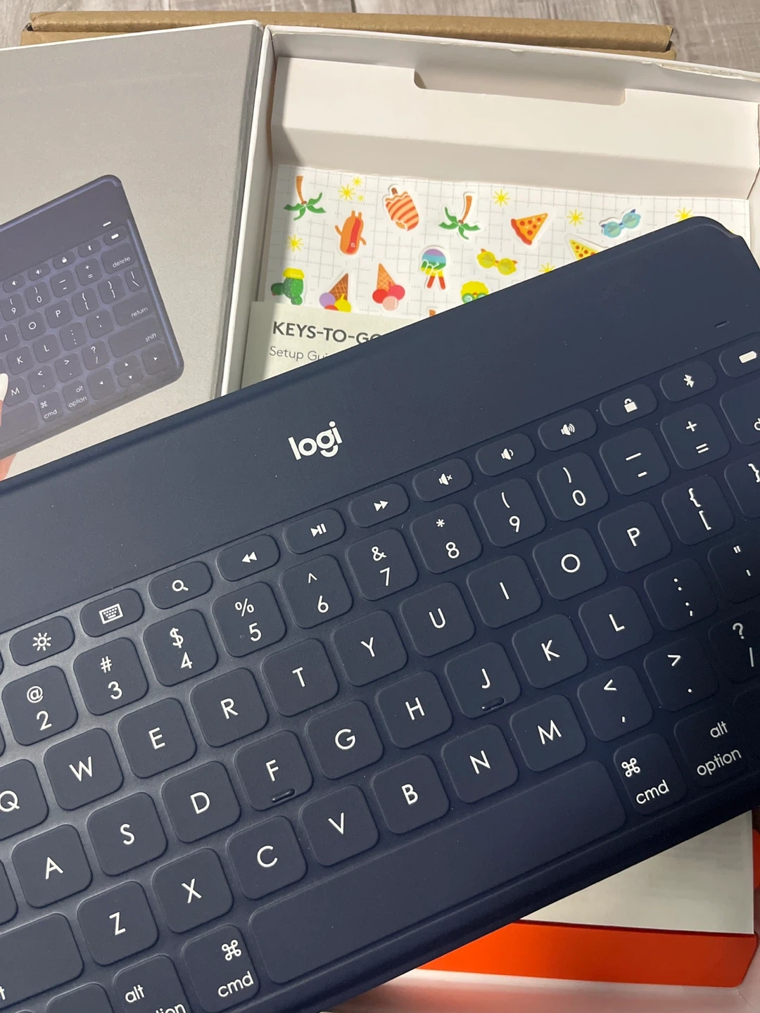 Selling a opened Logitech Keys-To-Go ultra-slim keyboard! It's still in the box and includes fun stickers. This keyboard is super lightweight and portable, making it perfect for on-the-go use. It also comes with an add-on iPhone stand. Great for use with iPhone, iPad, and Apple TV! Almost new! Was barely used!