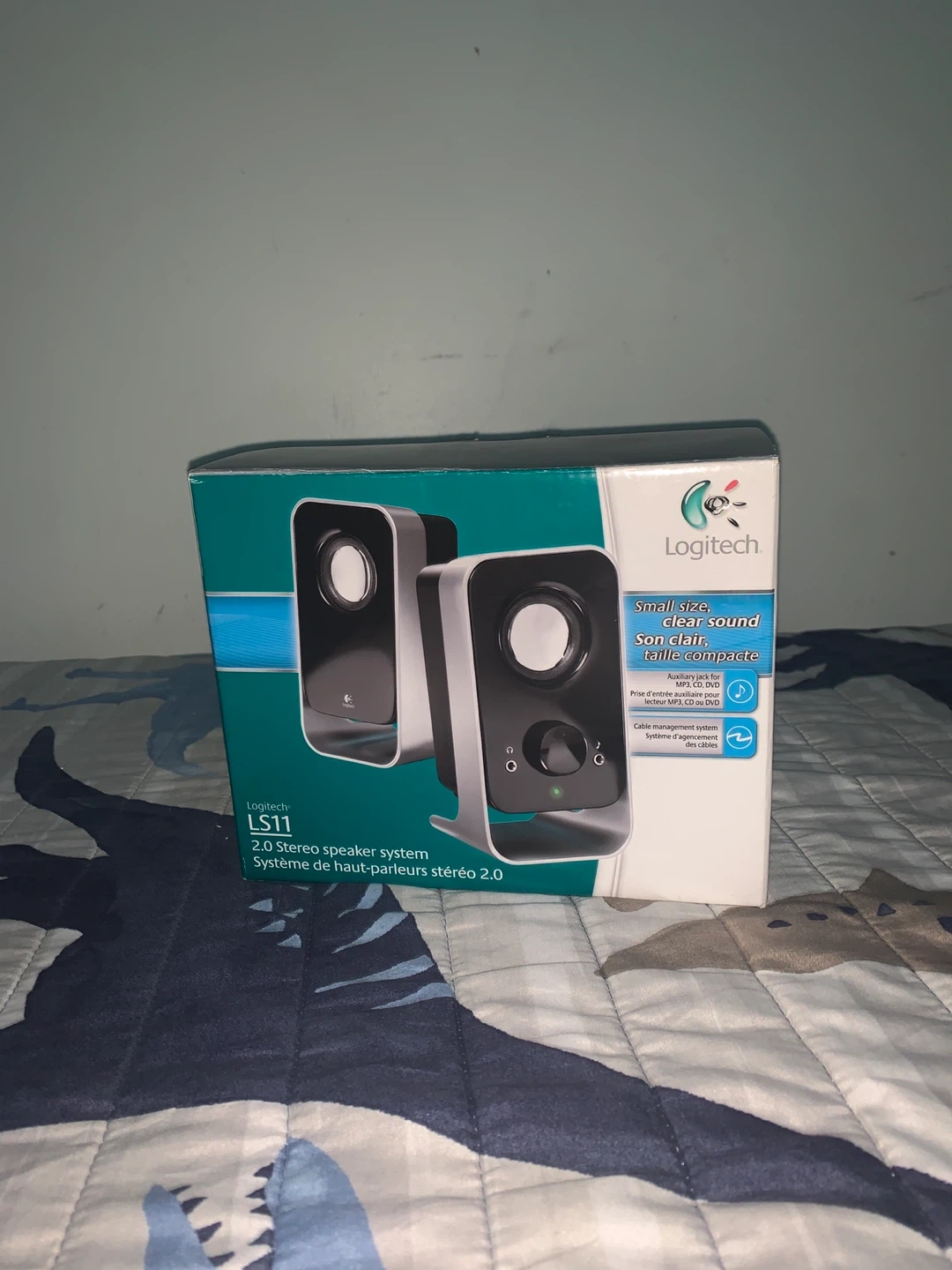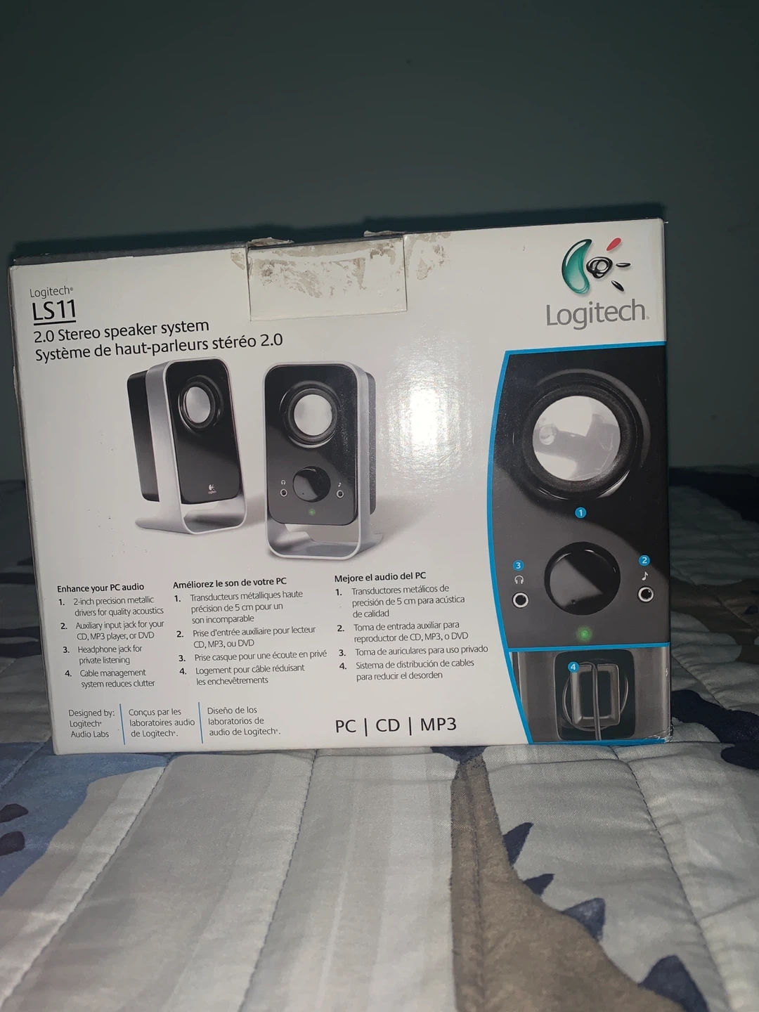 Selling a Logitech LS11 2.0 stereo speaker system. It's a small size, really compact, and delivers clear sound. Enhance your PC audio with these speakers! They feature a 2-inch precision metallic driver for quality acoustics, an available input jack for your CD, MP3, or DVD player, and a headphone jack for private listening. Cable management system reduces clutter. The box is included!