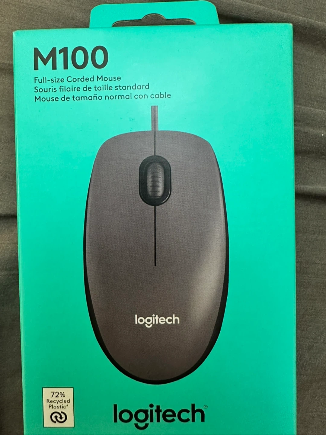 Selling a brand new Logitech M100 full-size corded mouse! It's still in its original packaging and has never been used. - Designed for left or right-handed use - Smooth cursor control - No hassle, no software setup
