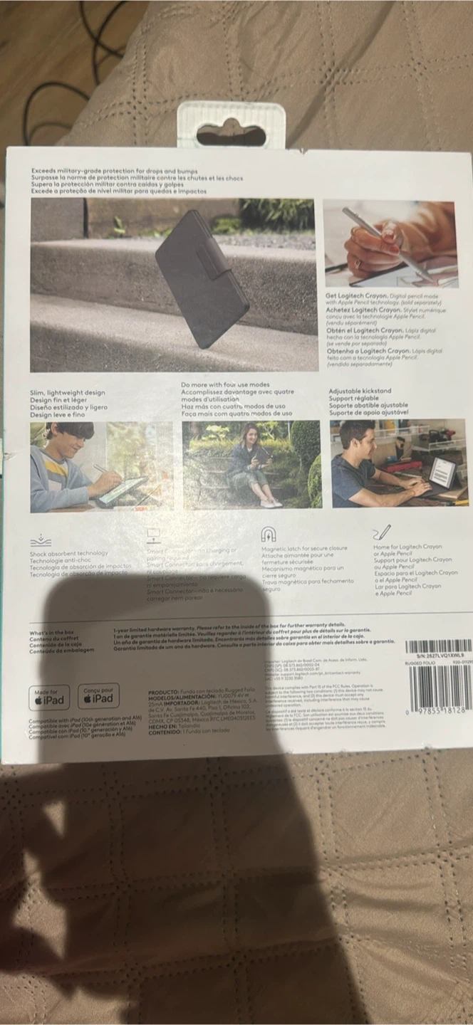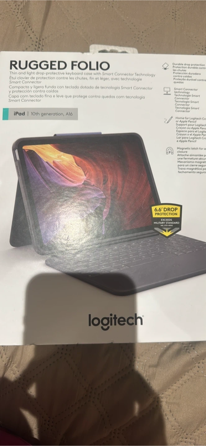 10Selling a Logitech Rugged Folio for the 10th generation iPad! It's a thin and light drop-protective keyboard case with Smart Connector Technology. It has a slim, lightweight design and provides durable drop protection. It also features an adjustable kickstand and a magnetic latch for secure closure. Exceeds military-grade protection for drops and bumps! Compatible with iPad (10th generation A16).