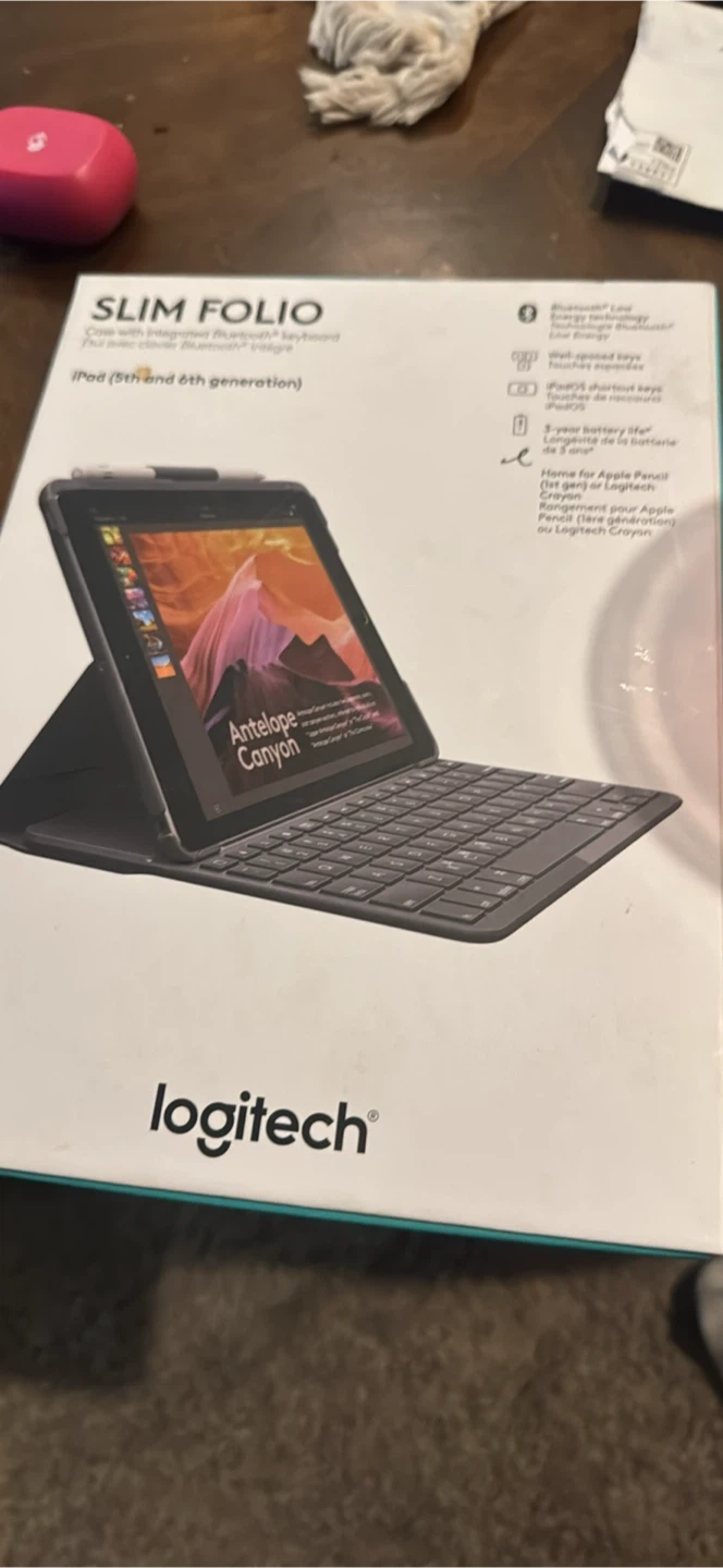 60Selling a Logitech Slim Folio case with integrated Bluetooth keyboard for iPad (5th and 6th generation)! It has well-spaced keys and iPadOS shortcut keys. It also has a home for an Apple Pencil or Logitech Crayon. It also boasts a 3-year battery life Brand New